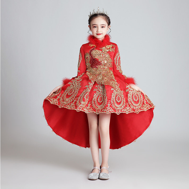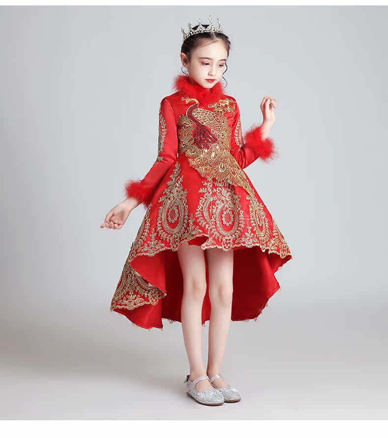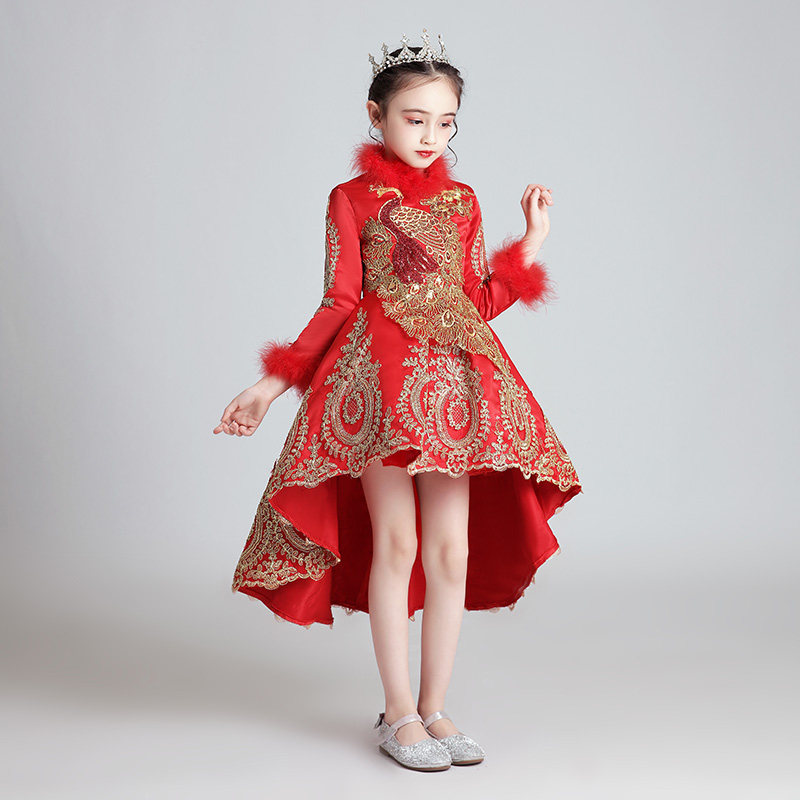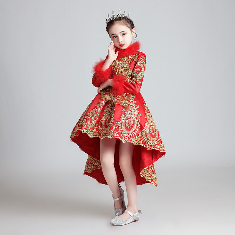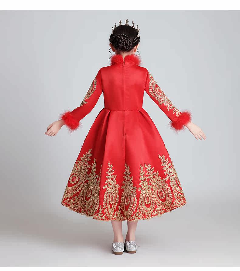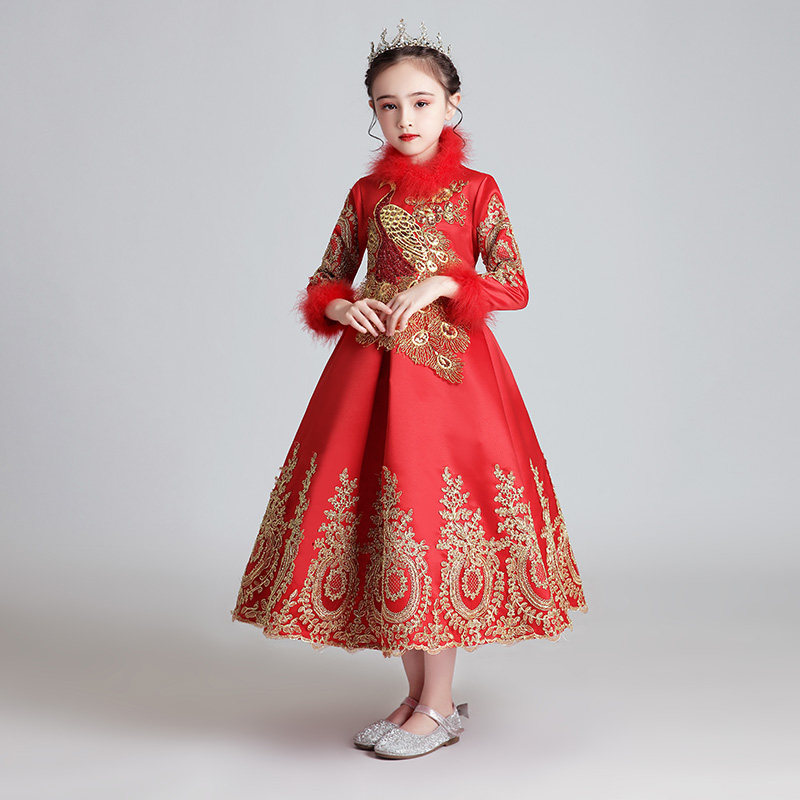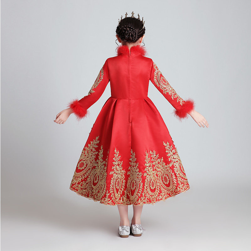 Флисовый красный лонгслив, наряд маленькой принцессы, вечернее платье, зимний костюм, китайский стиль