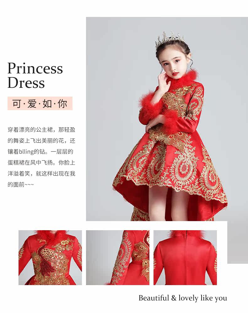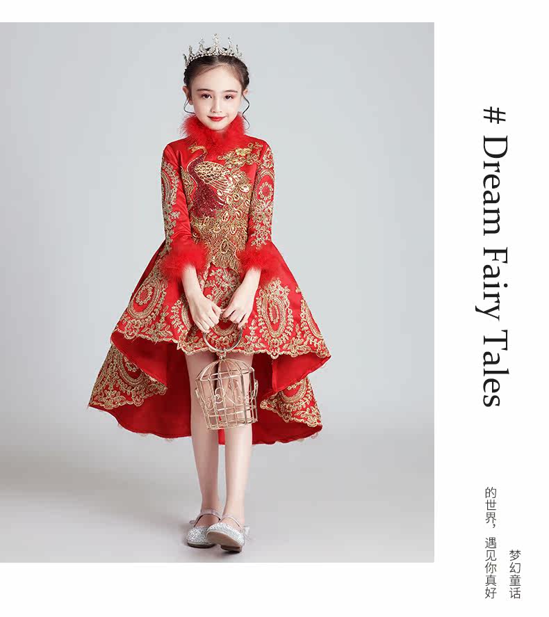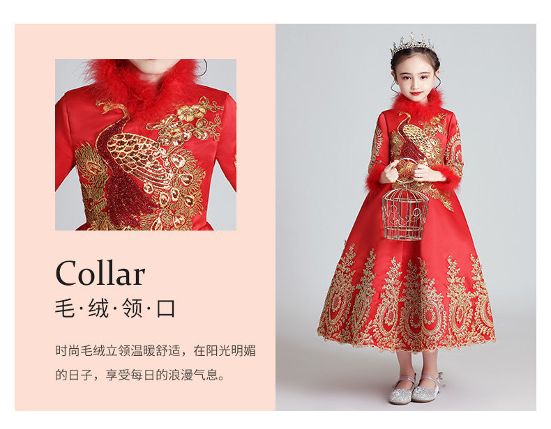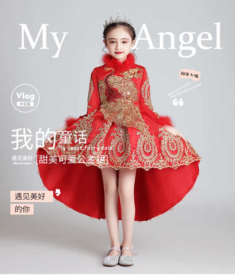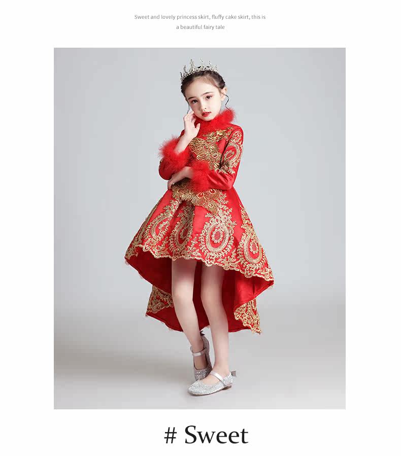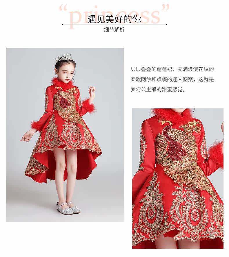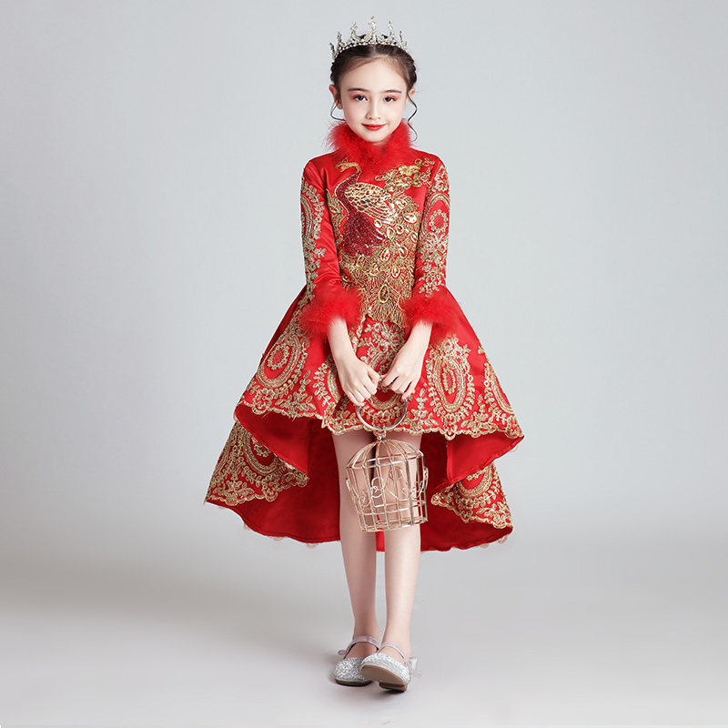 Флисовый красный лонгслив, наряд маленькой принцессы, вечернее платье, зимний костюм, китайский стиль