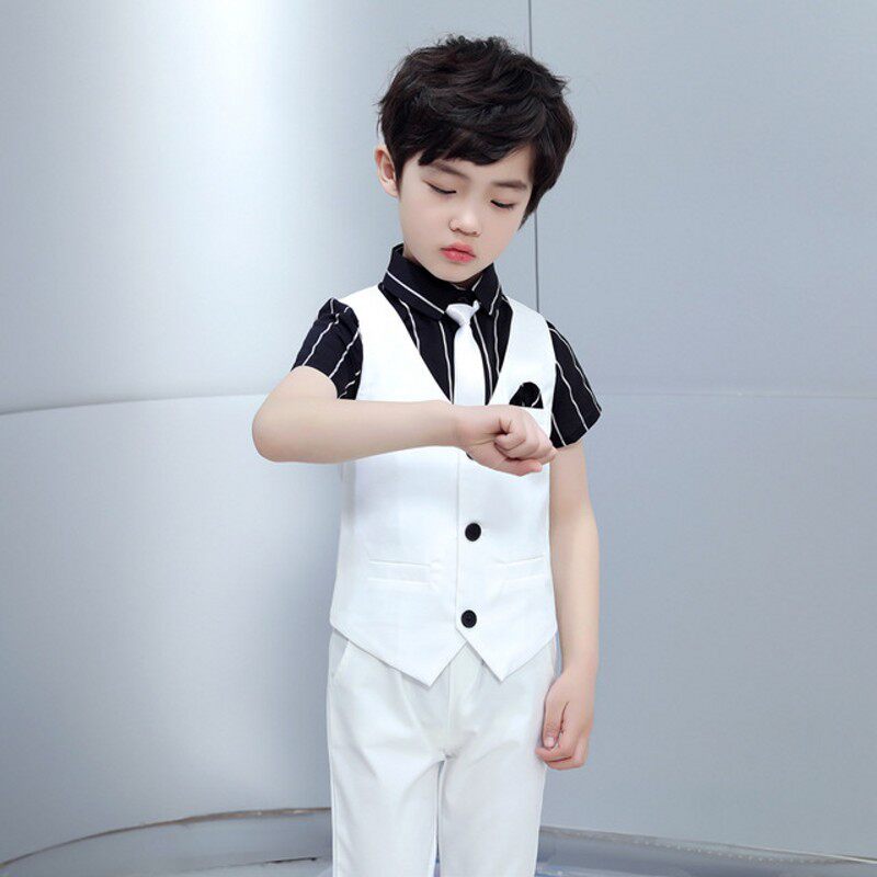 Летний белый костюм мальчика цветочника для мальчиков, детское пианино, наряд для музыкальных выступлений, подарок на день рождения