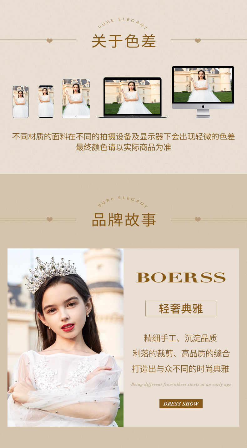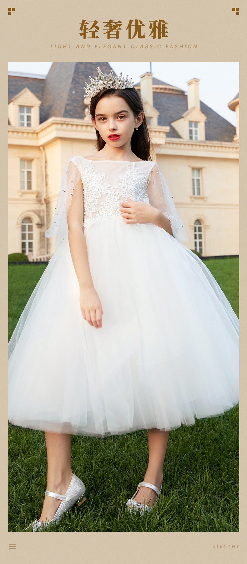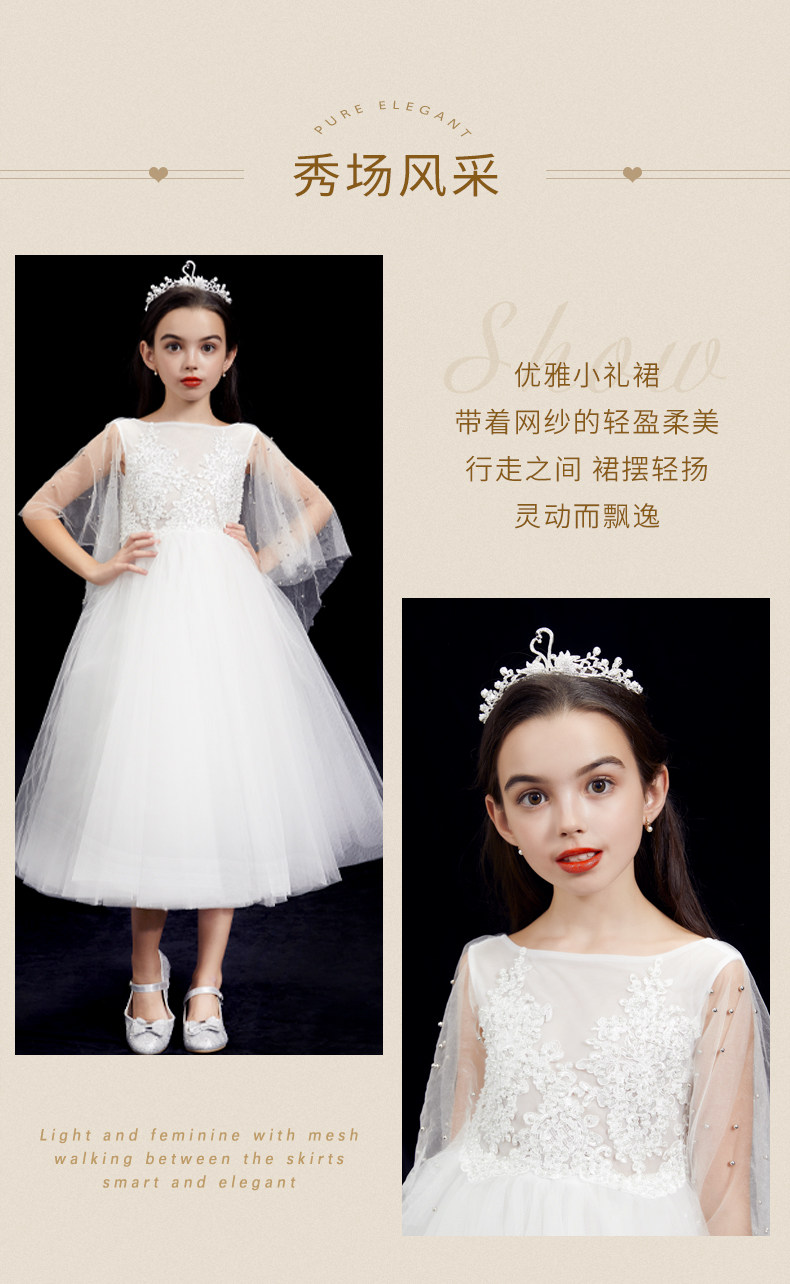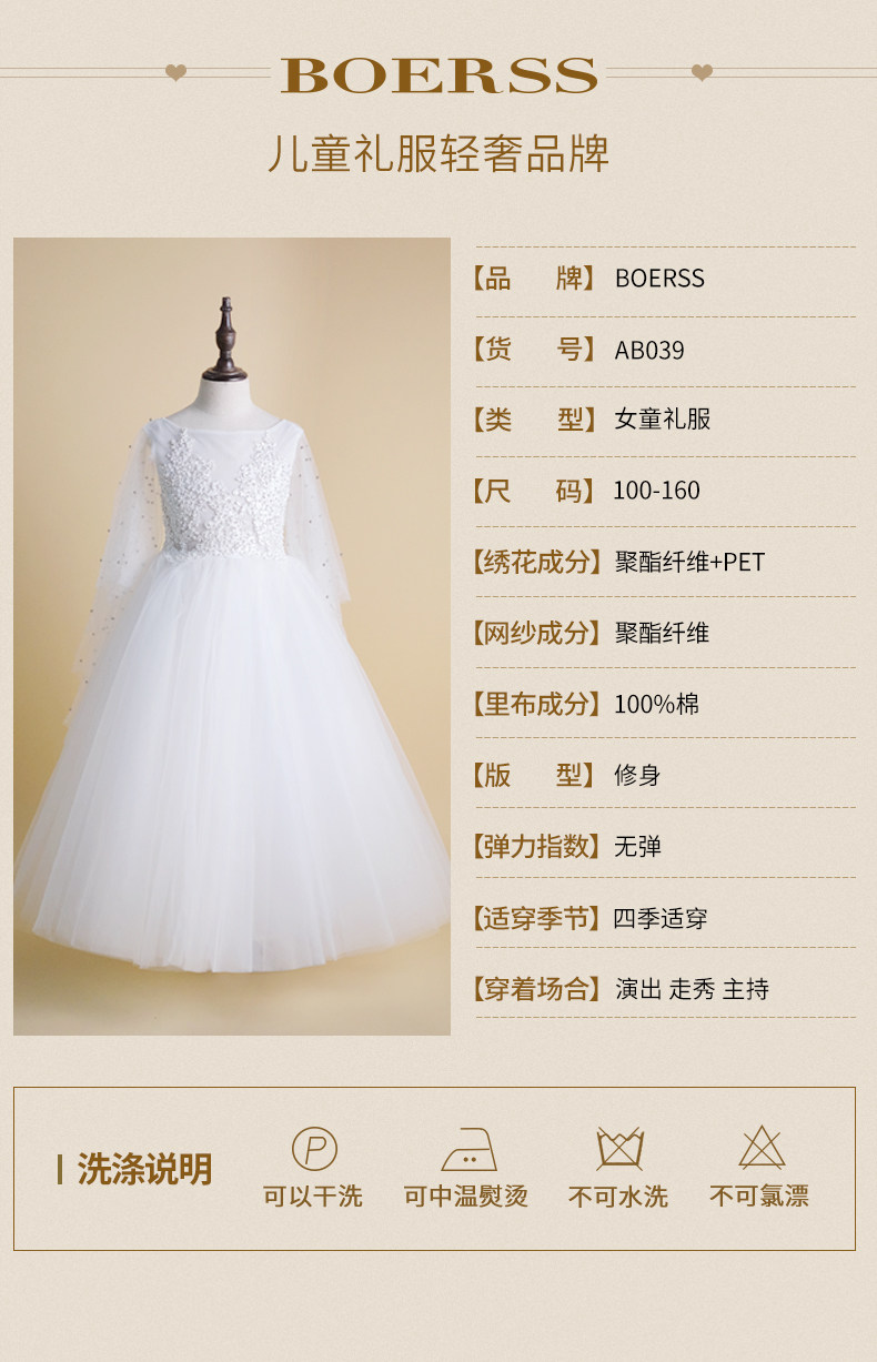 BOERSS Наряд маленькой принцессы, белое детское платье, в западном стиле
