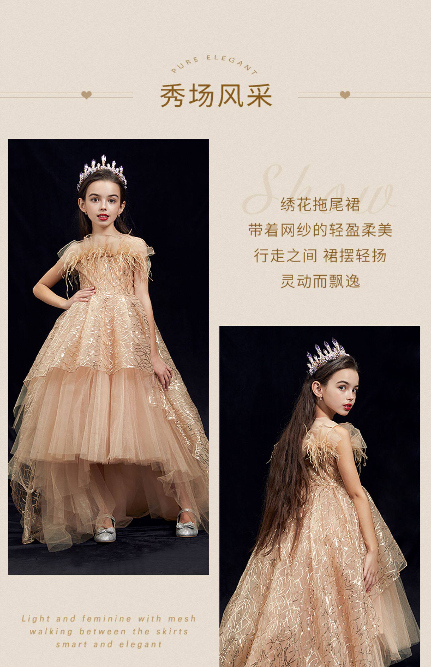 Элитный наряд маленькой принцессы, детское вечернее платье, в западном стиле, с вышивкой, для подиума