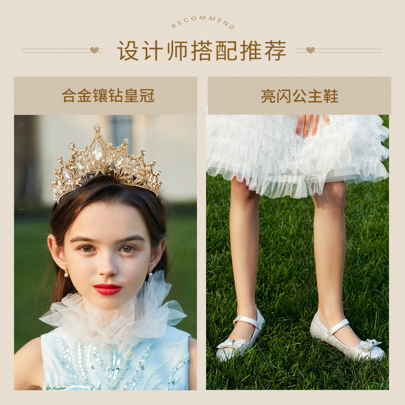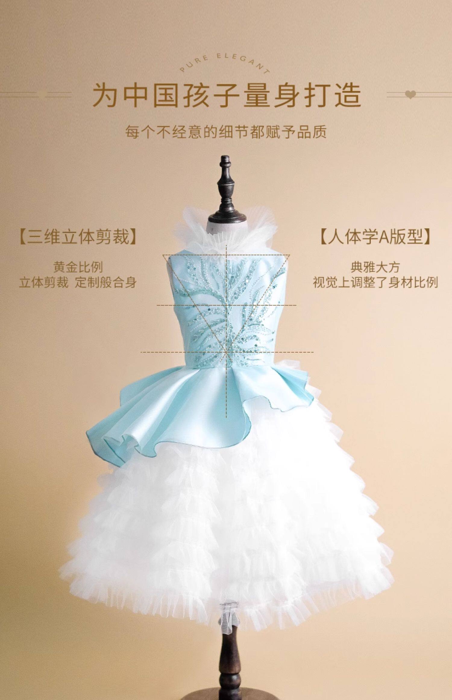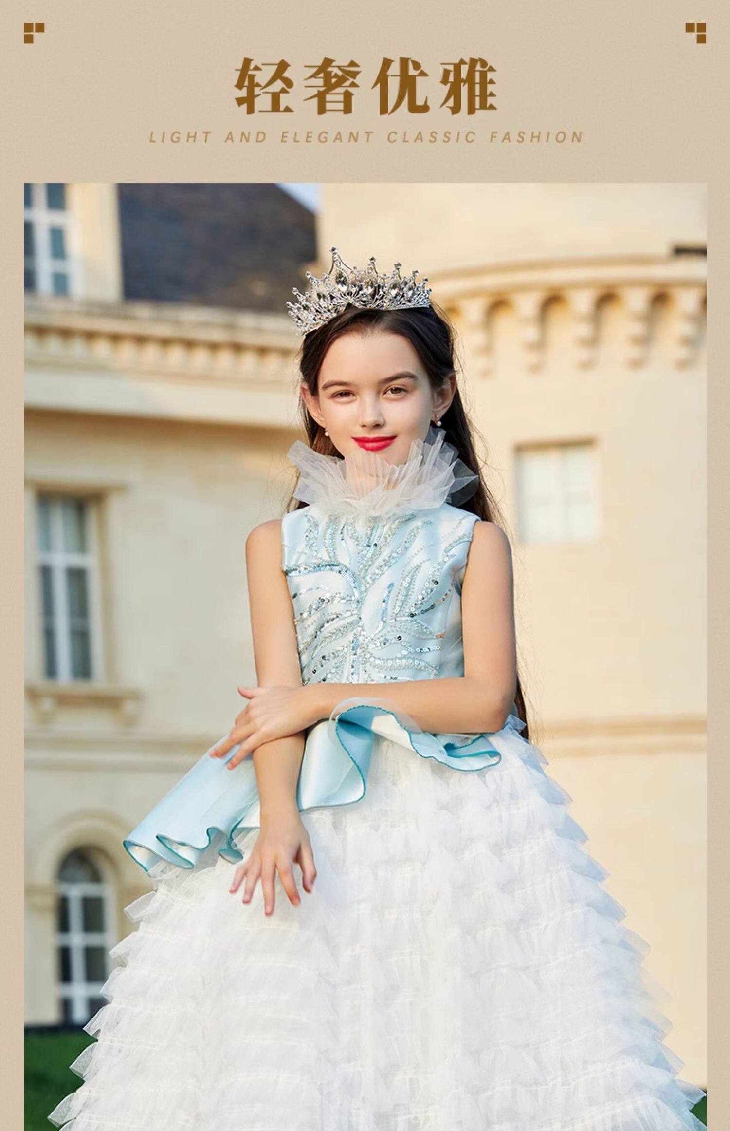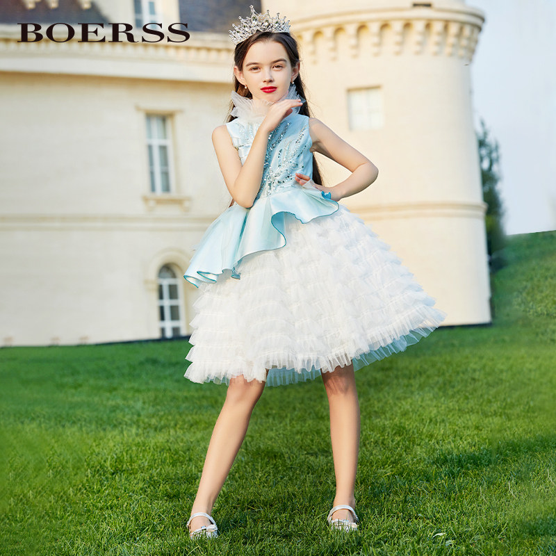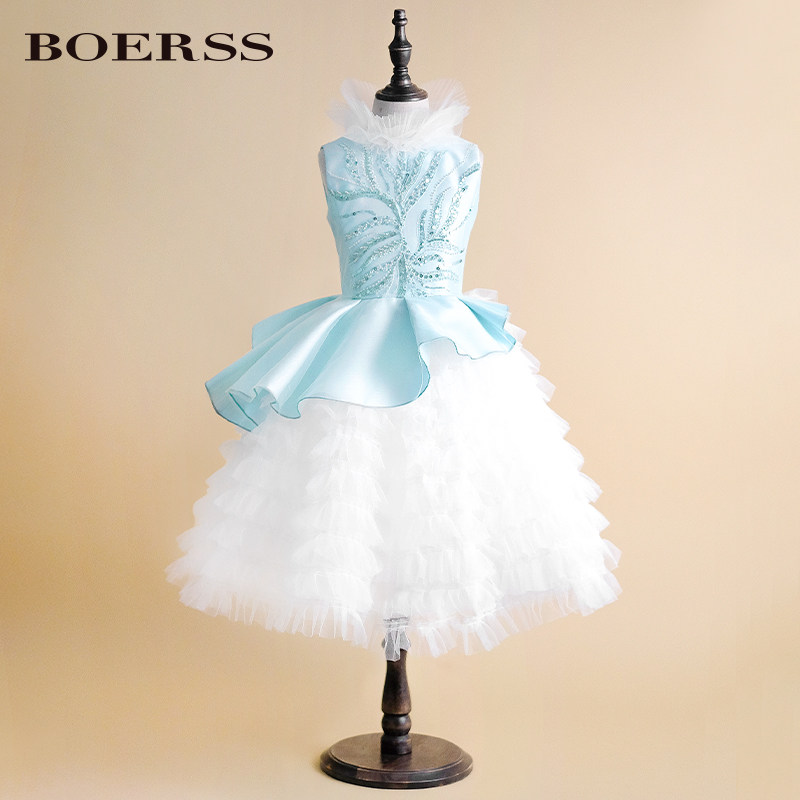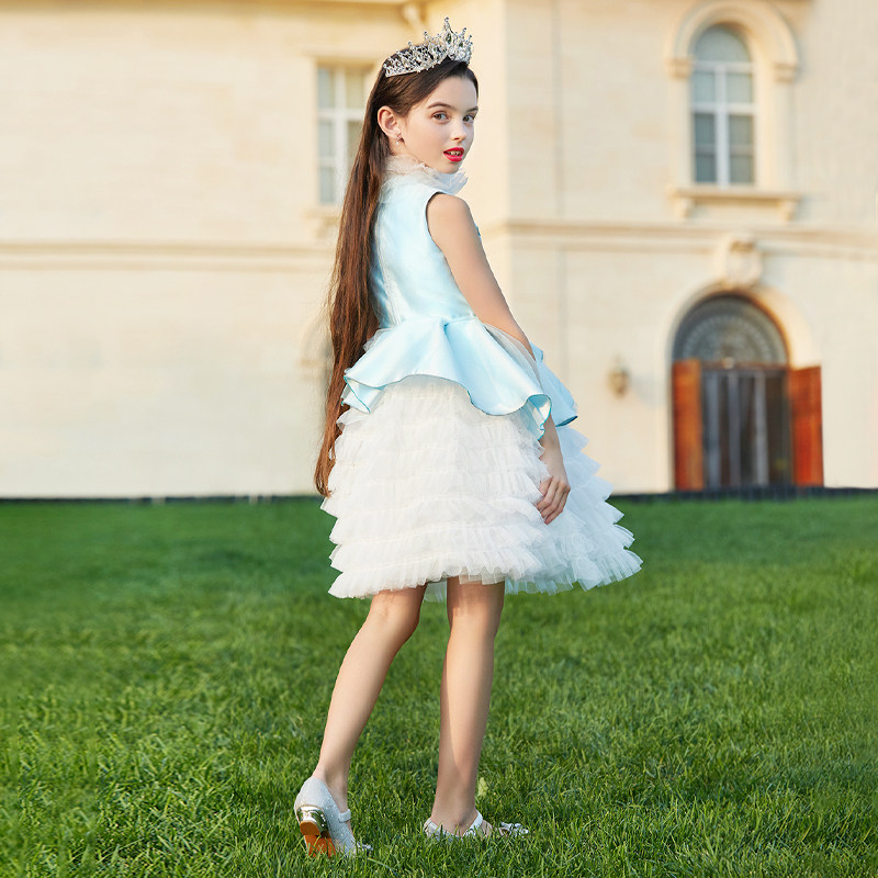 Синий наряд маленькой принцессы, элегантное детское вечернее платье, в западном стиле, с вышивкой