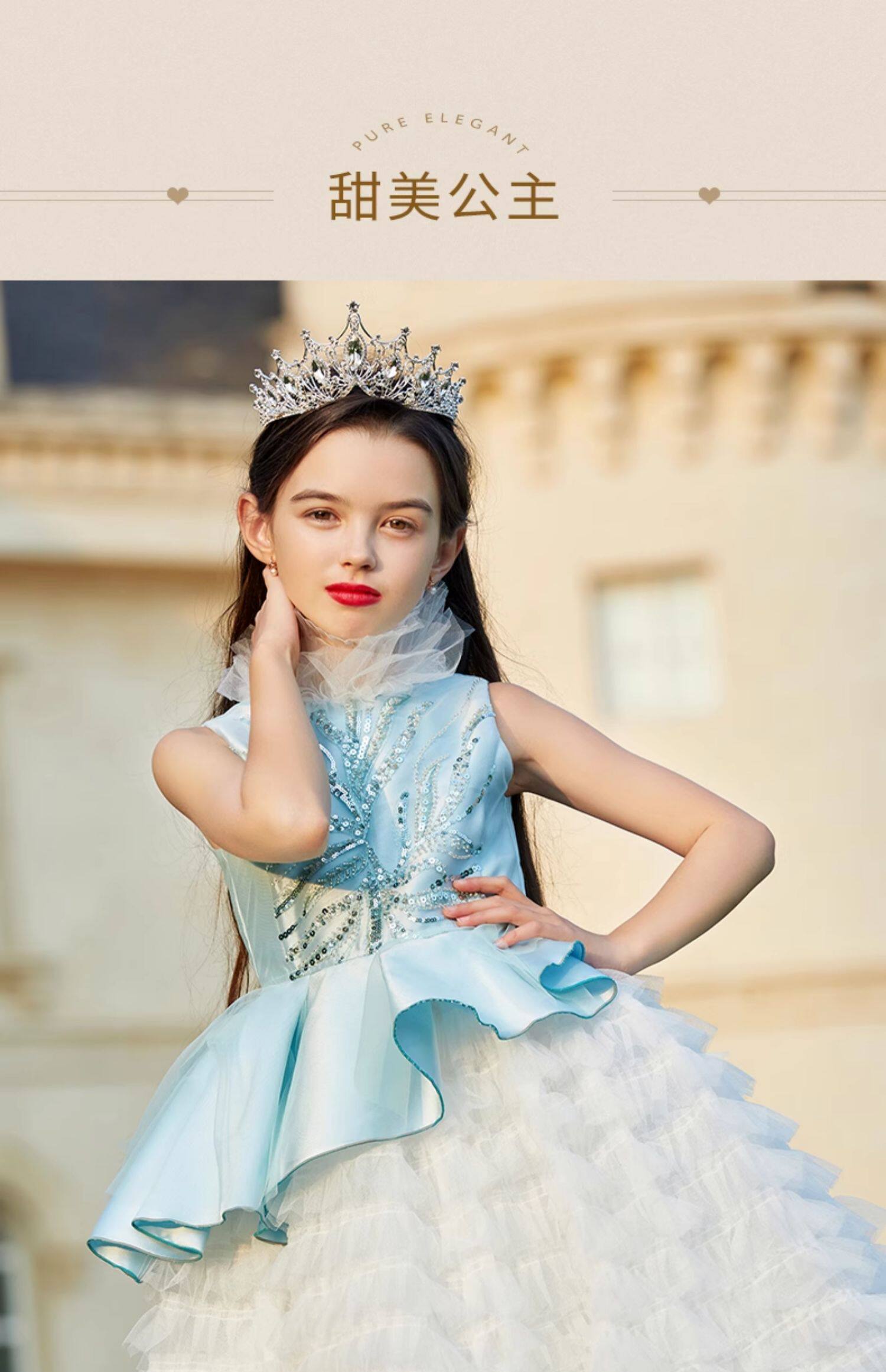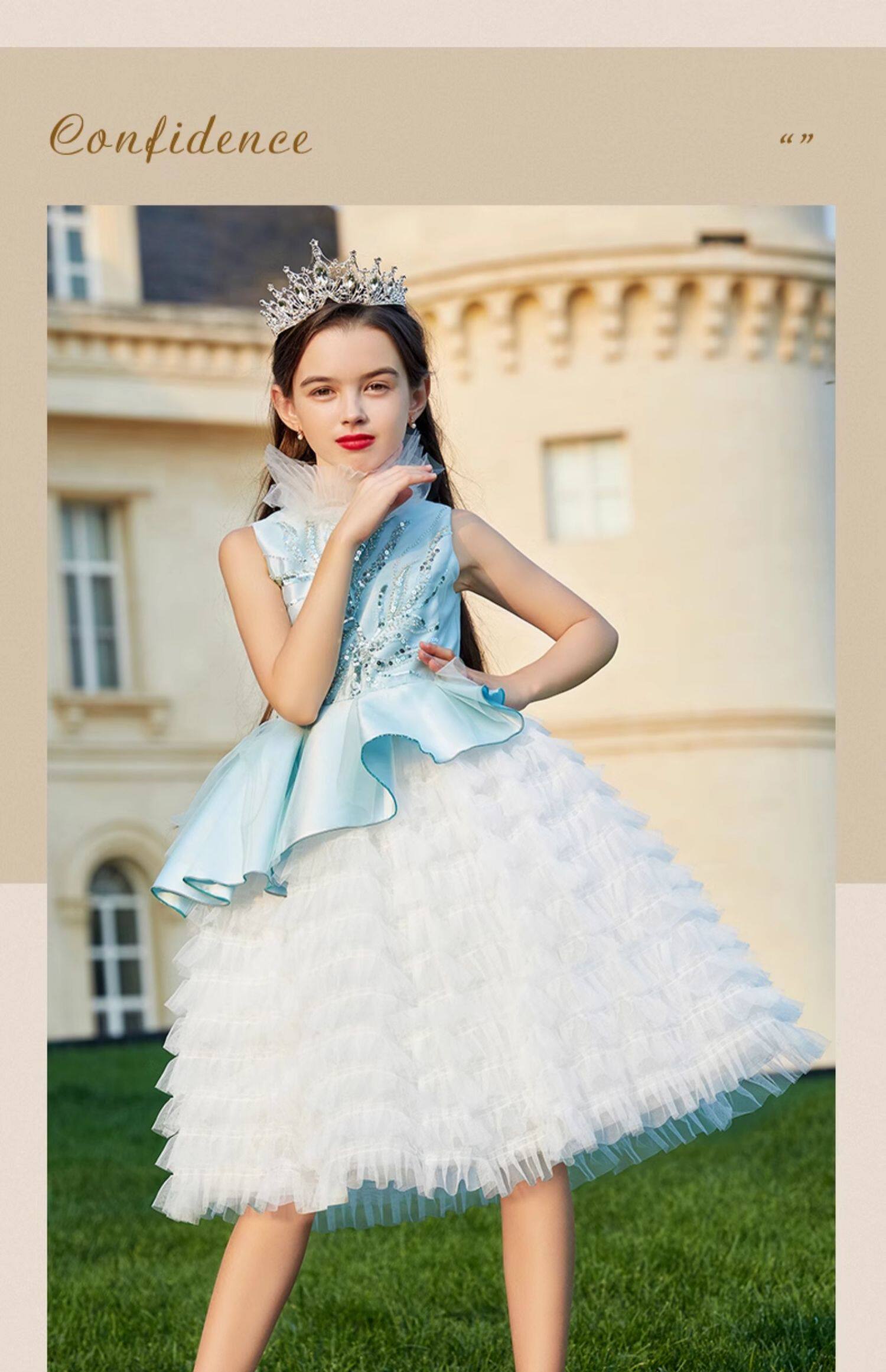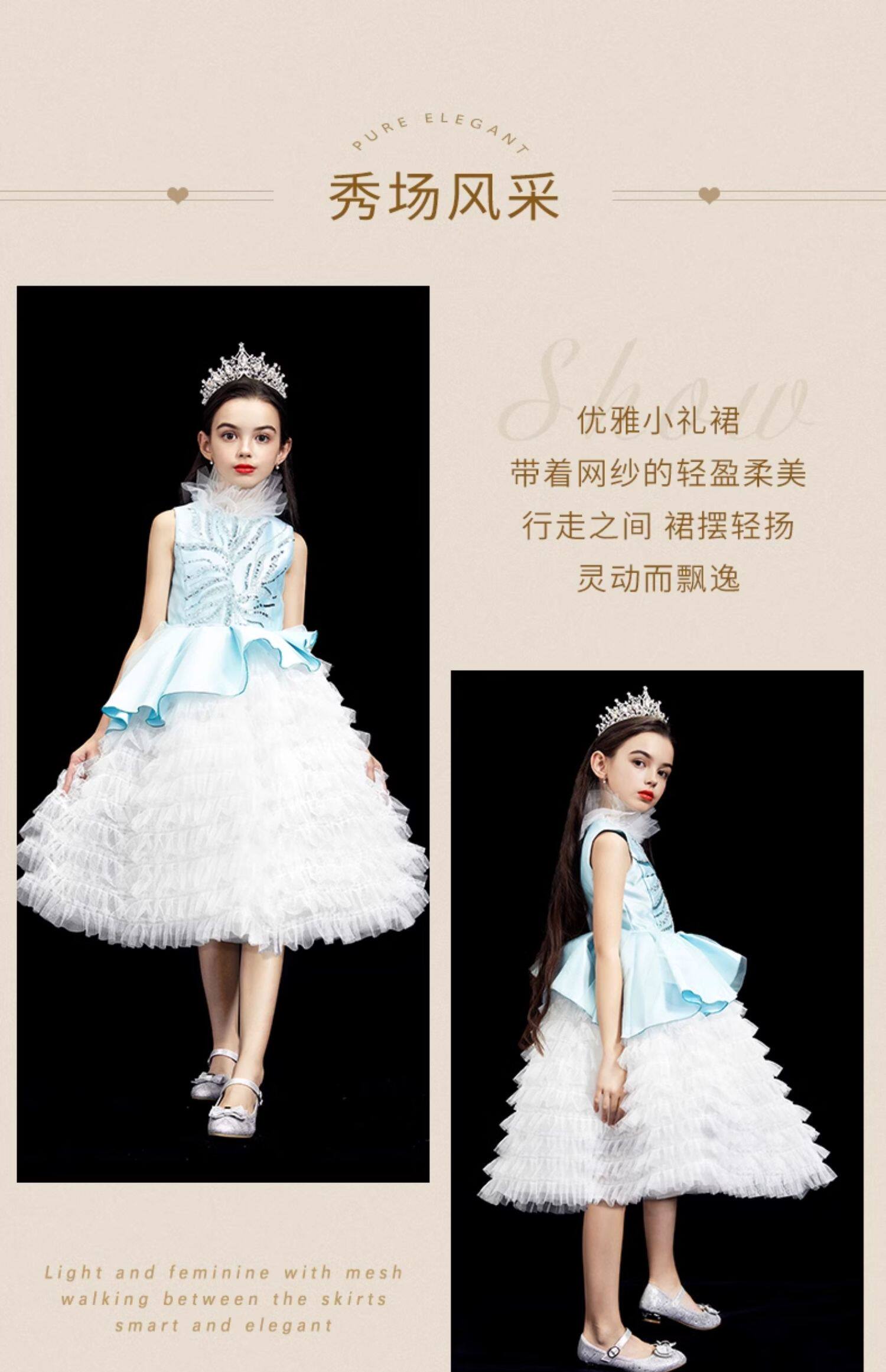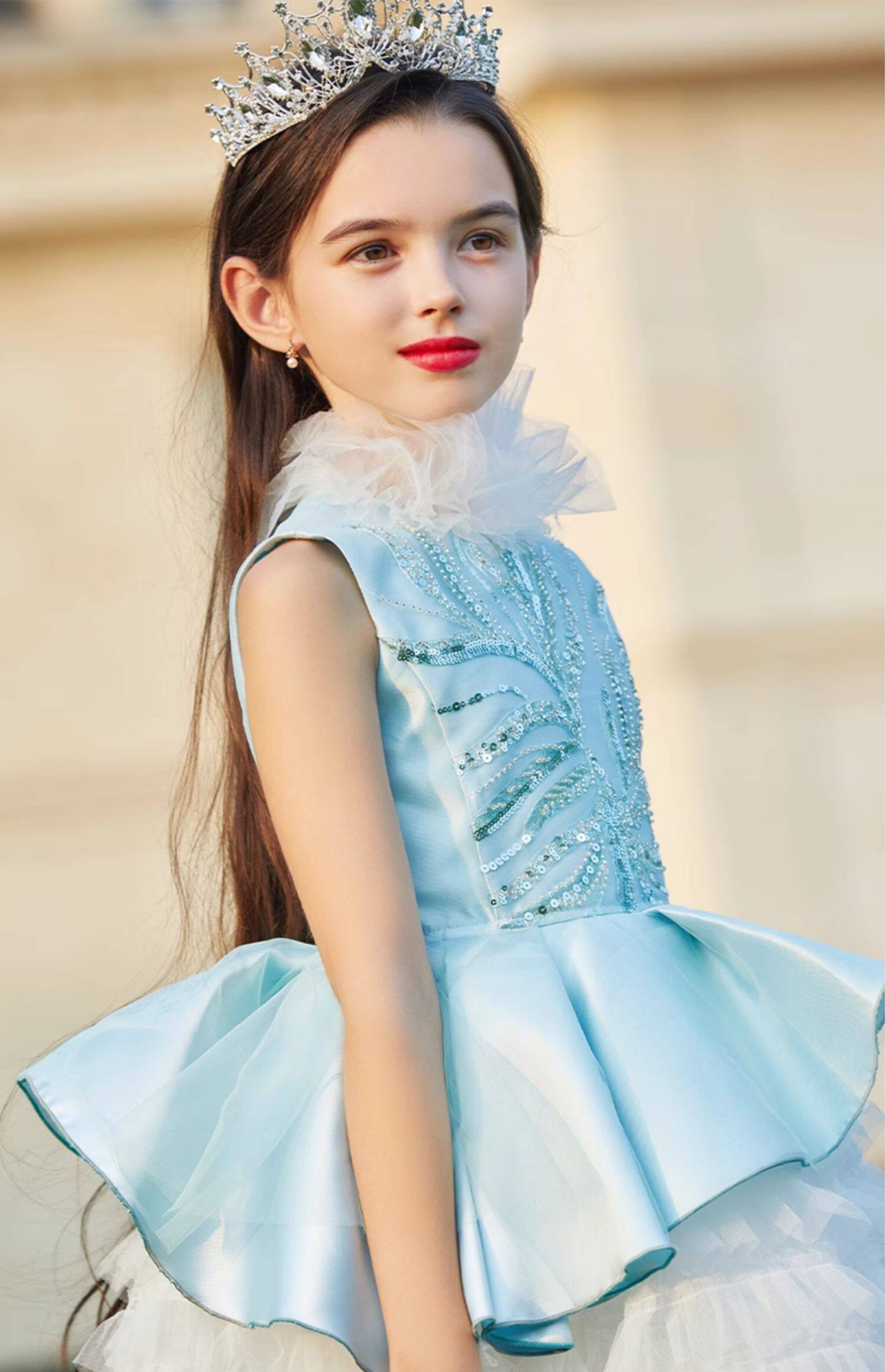Синий наряд маленькой принцессы, элегантное детское вечернее платье, в западном стиле, с вышивкой