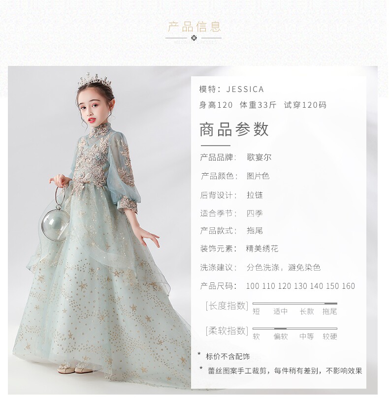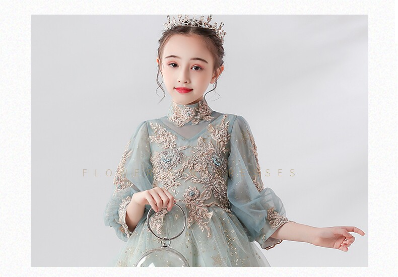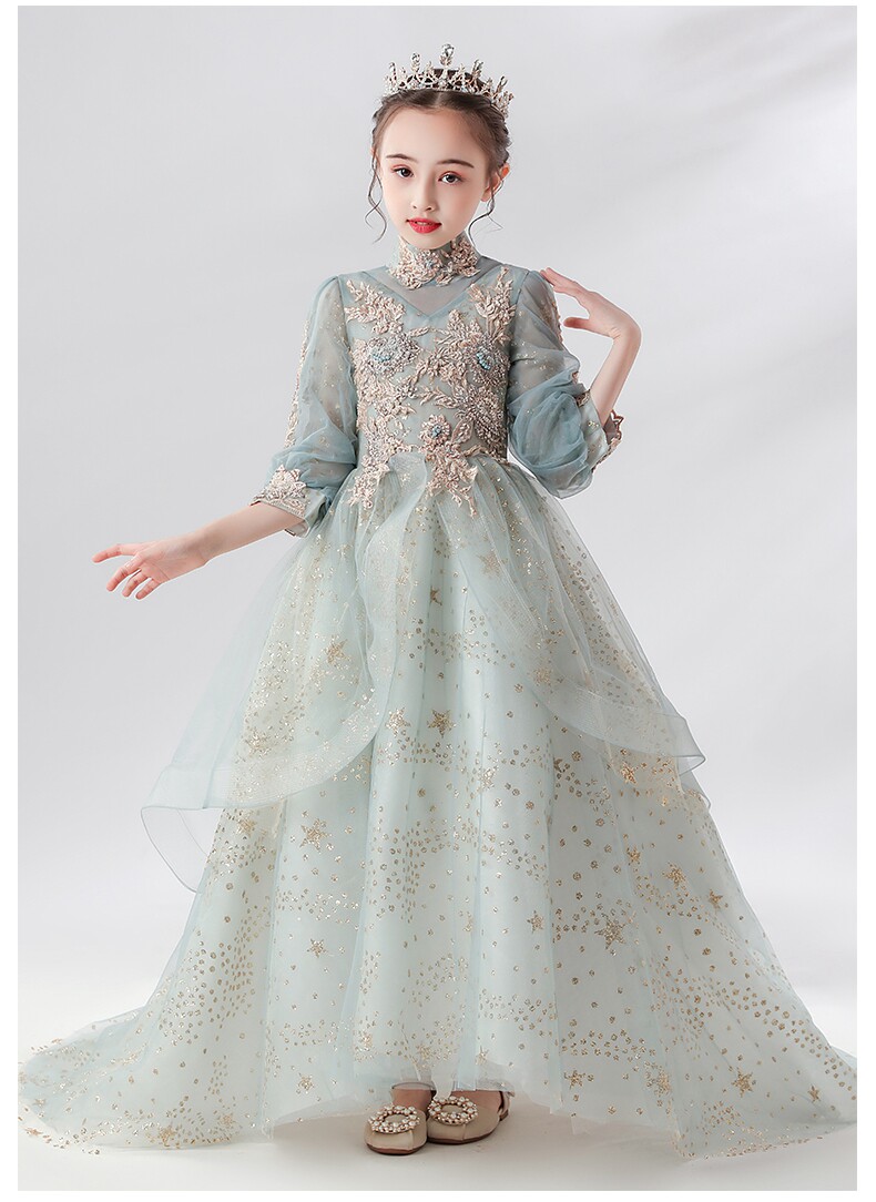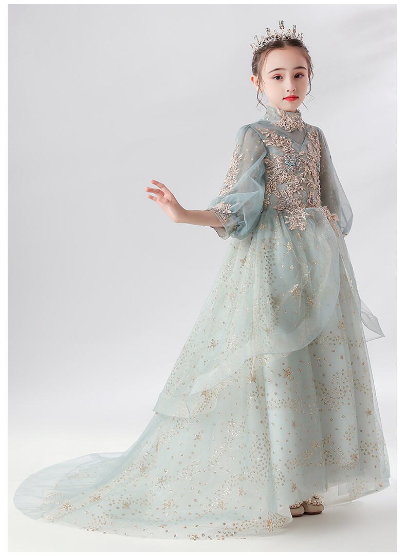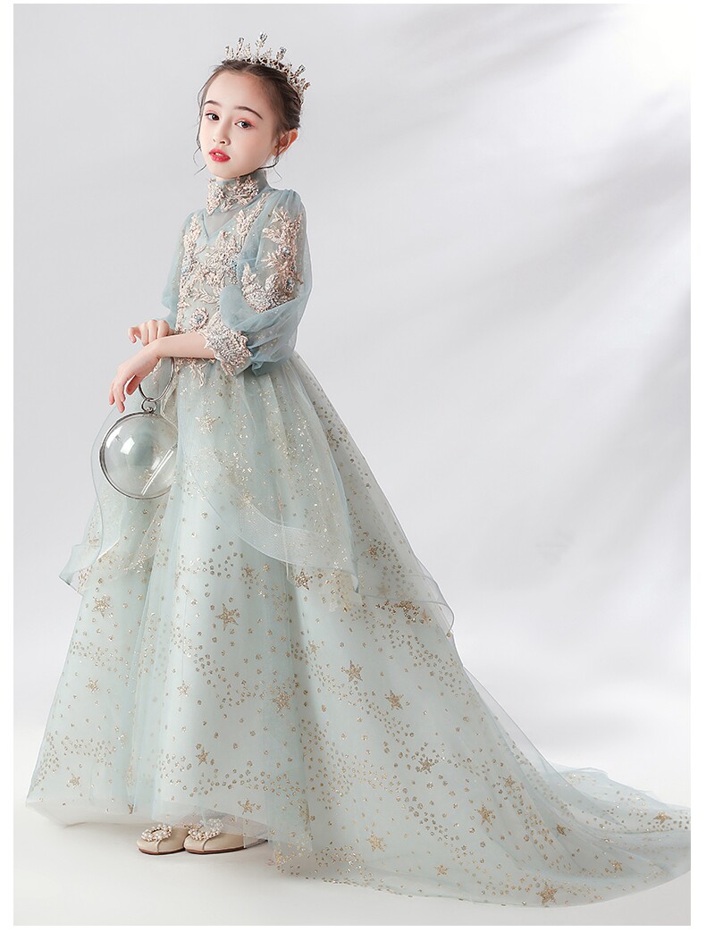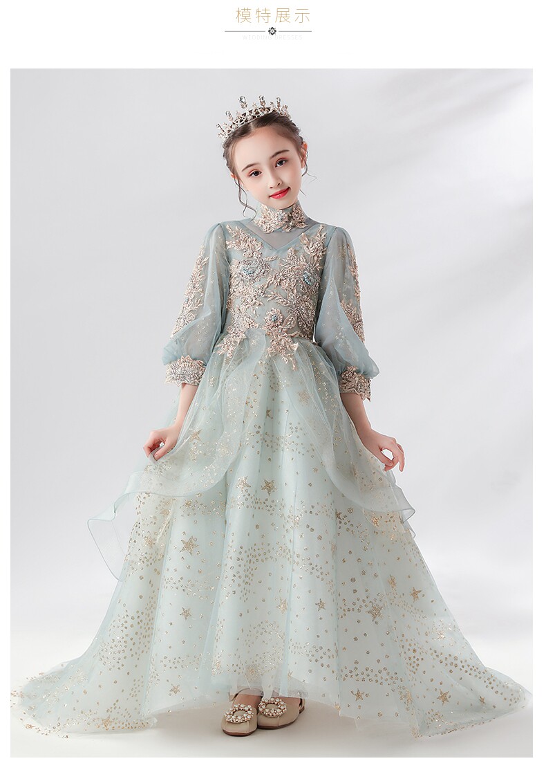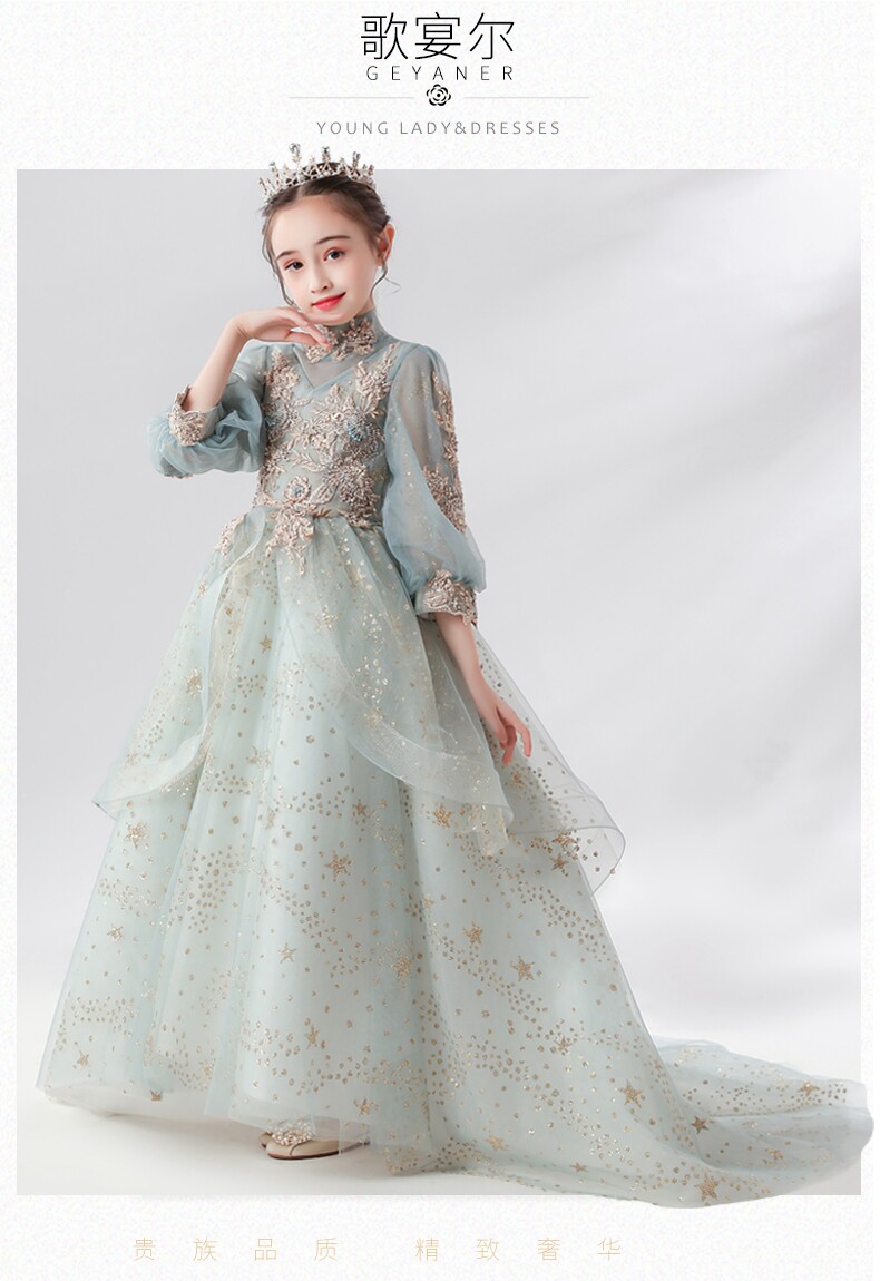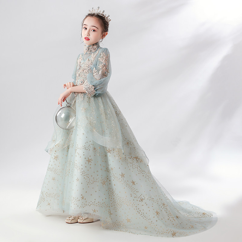 Детское вечернее платье, сверхдлинное платье девочки цветочницы, наряд маленькой принцессы, свадебное платье, наряд для музыкальных выступлений