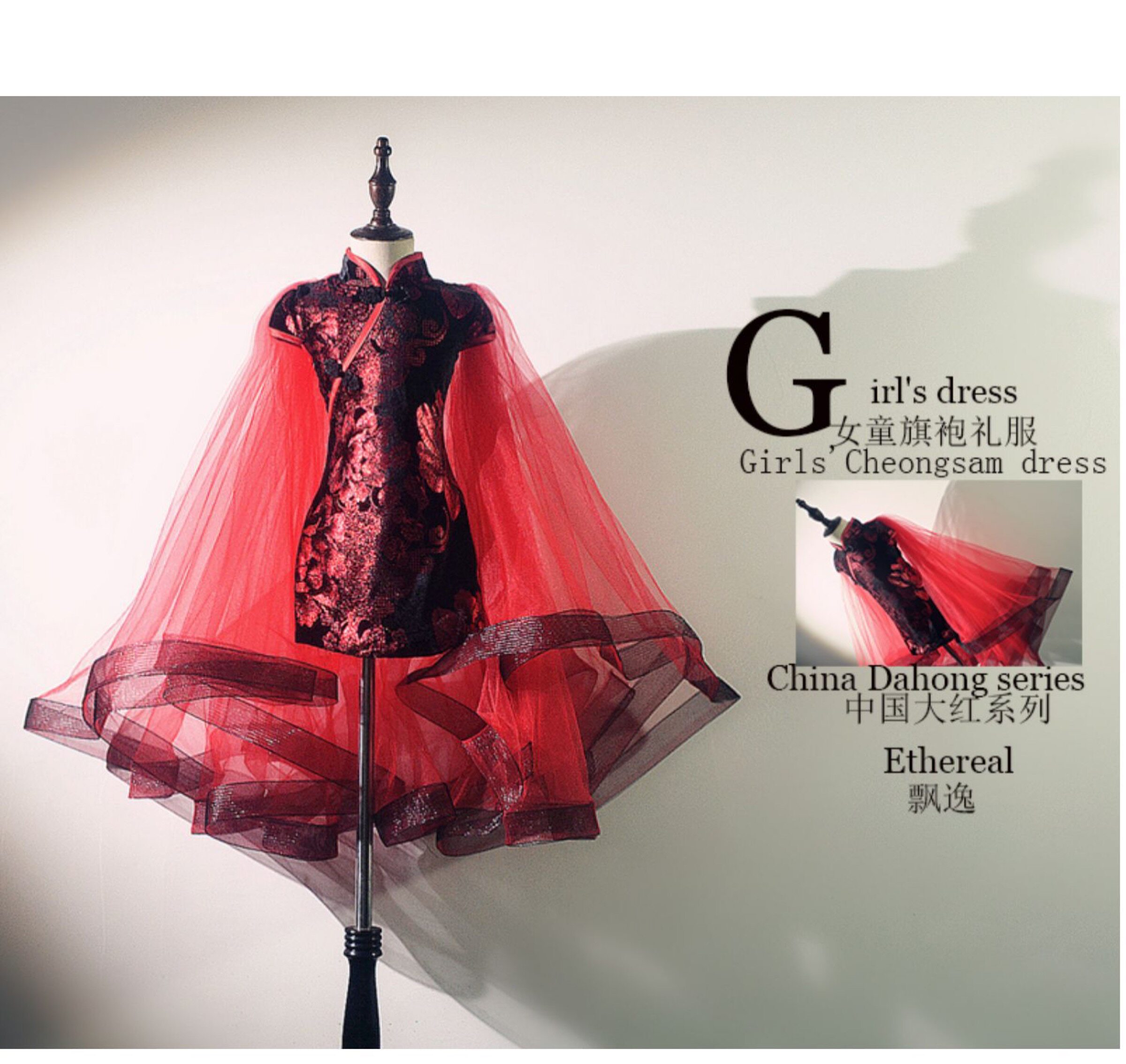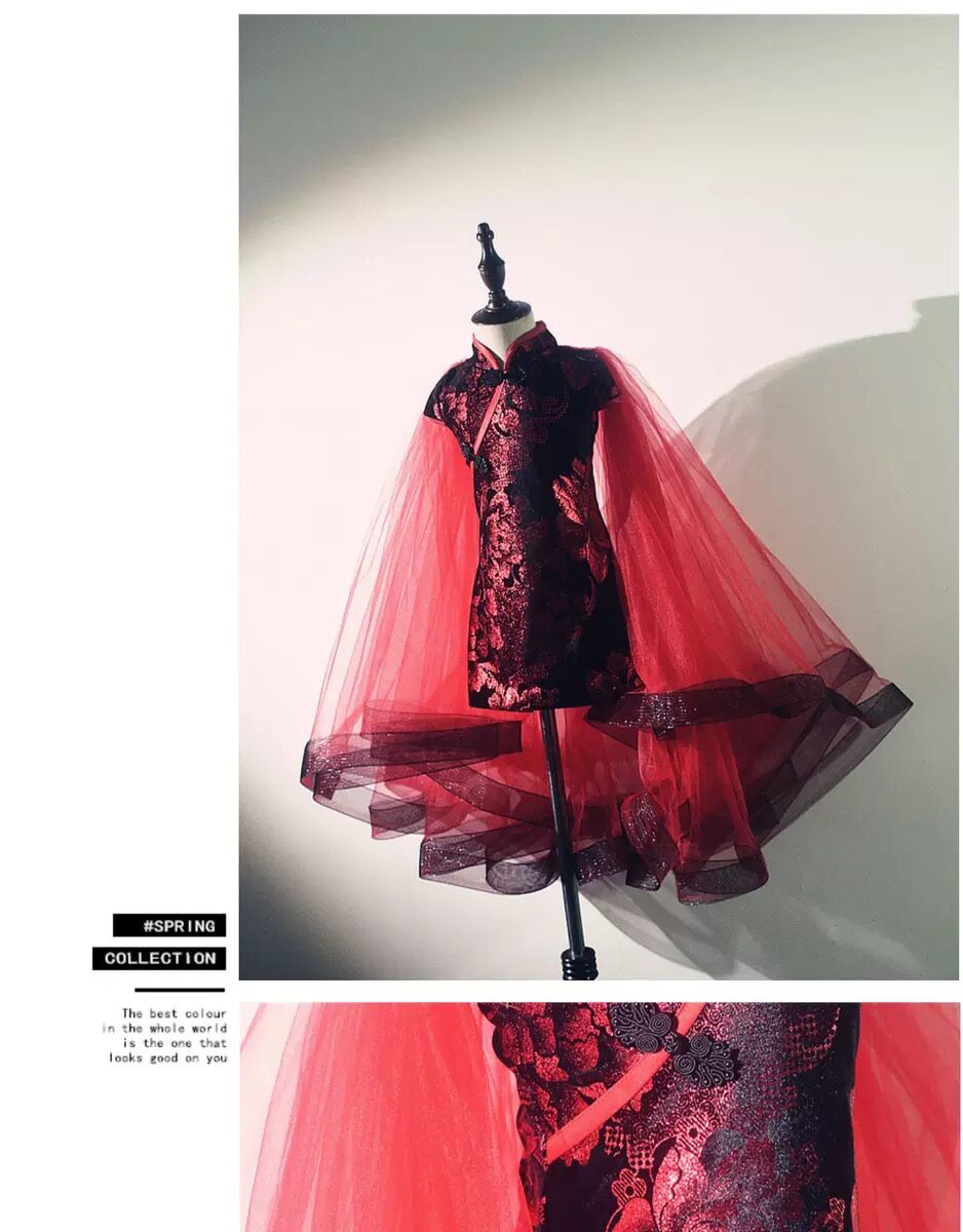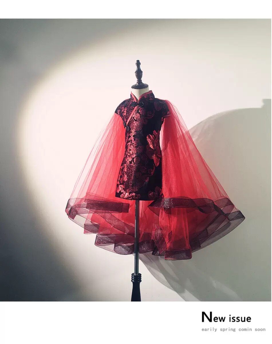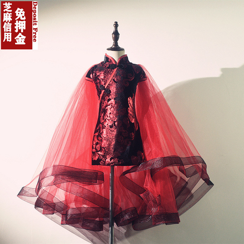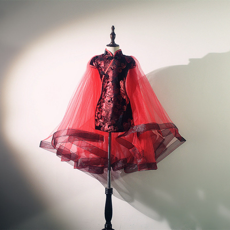 Ципао, манекен головы, детский костюм, красное платье, китайский стиль, для подиума