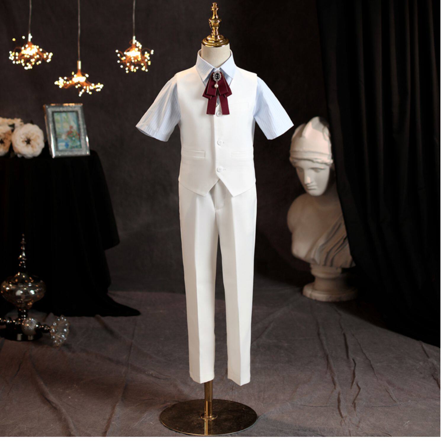 Элегантный элитный летний костюм мальчика цветочника, белое платье для мальчиков, пианино, короткий рукав