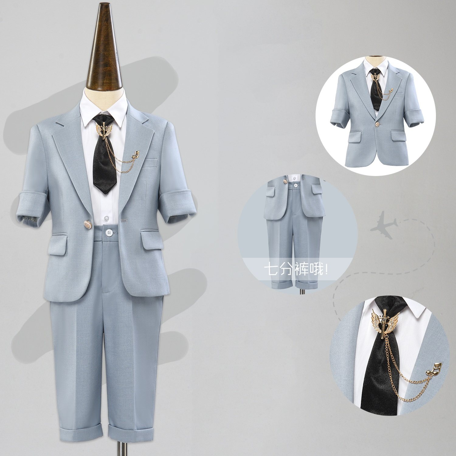 Летний короткий синий детский костюм, платье, пианино, наряд для музыкальных выступлений, детский подиумный костюм