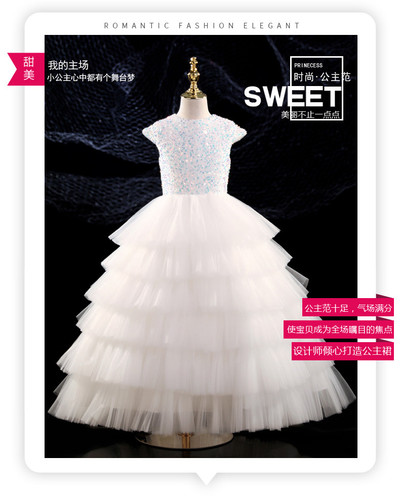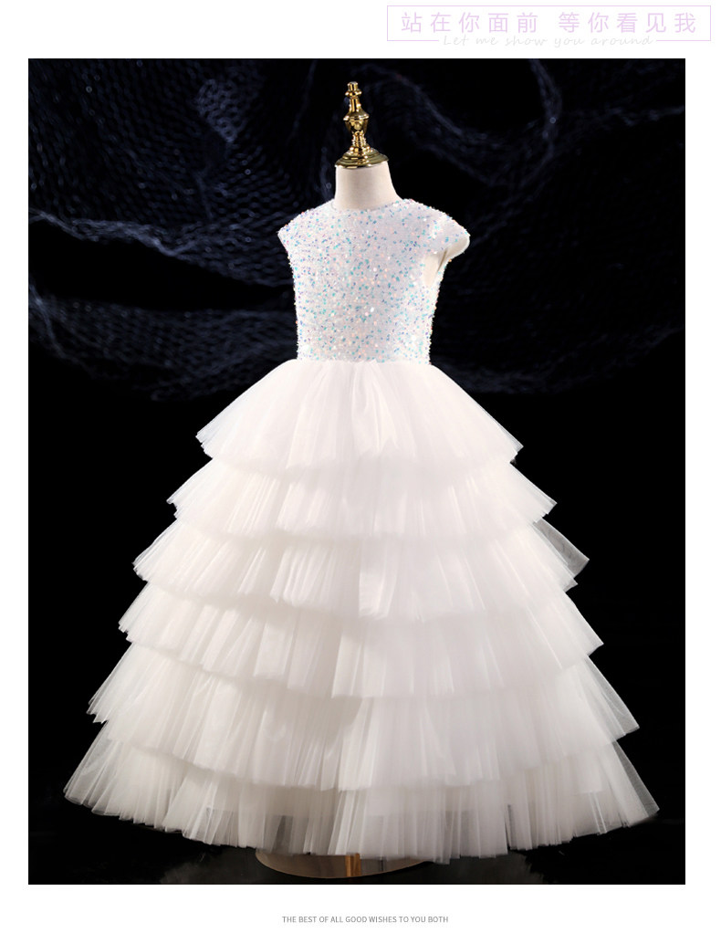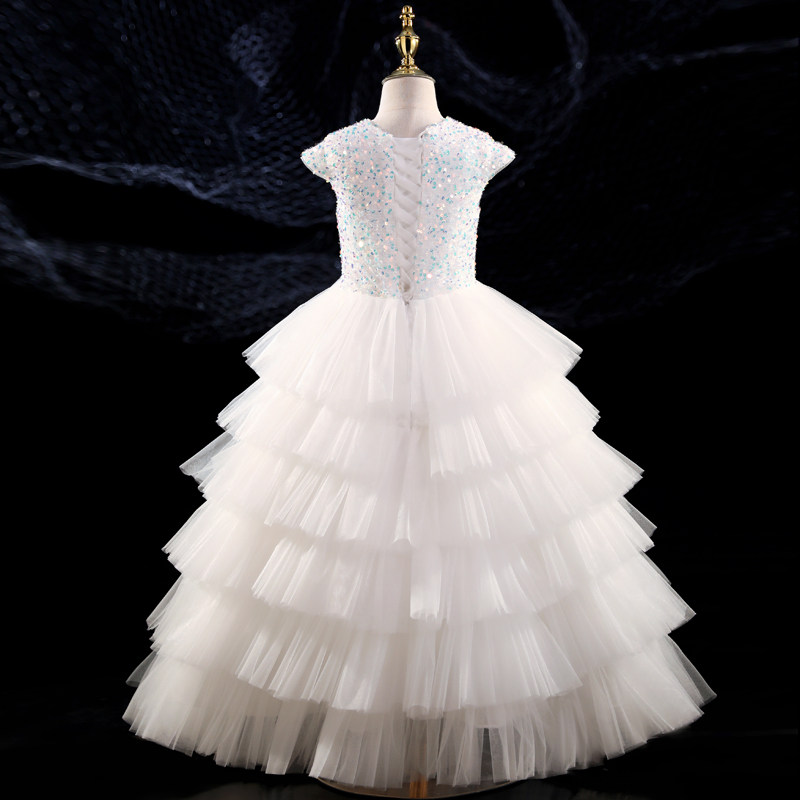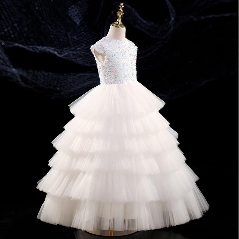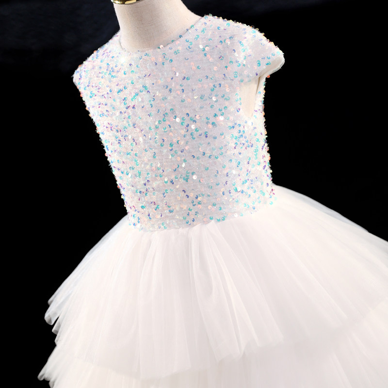 Белый наряд маленькой принцессы, свадебное платье, элитный наряд для музыкальных выступлений, из фатина