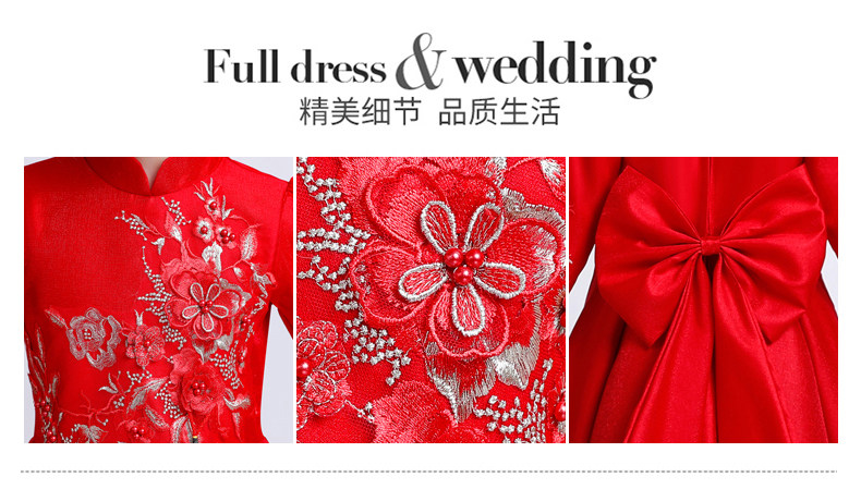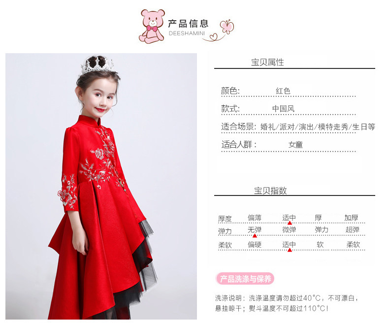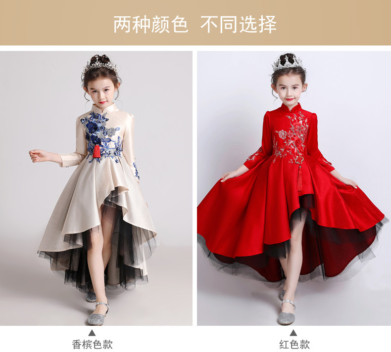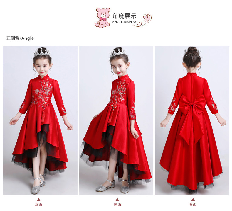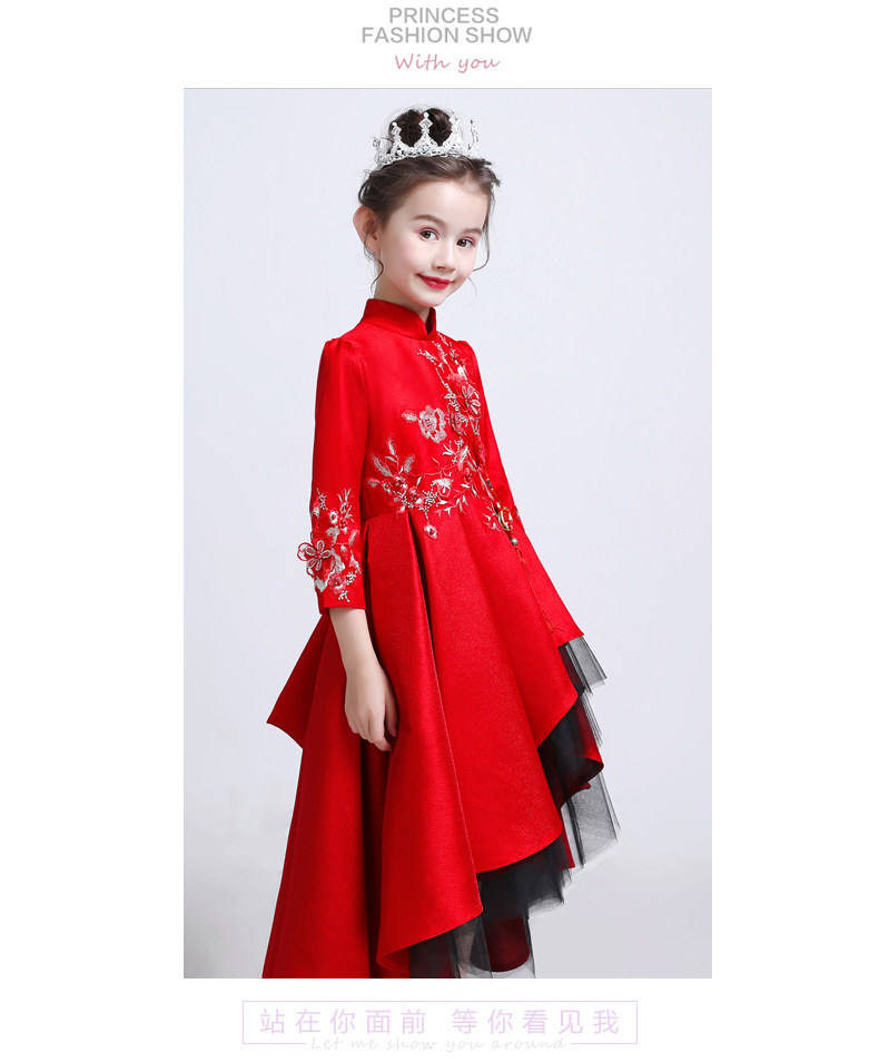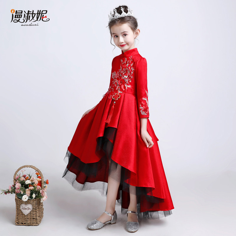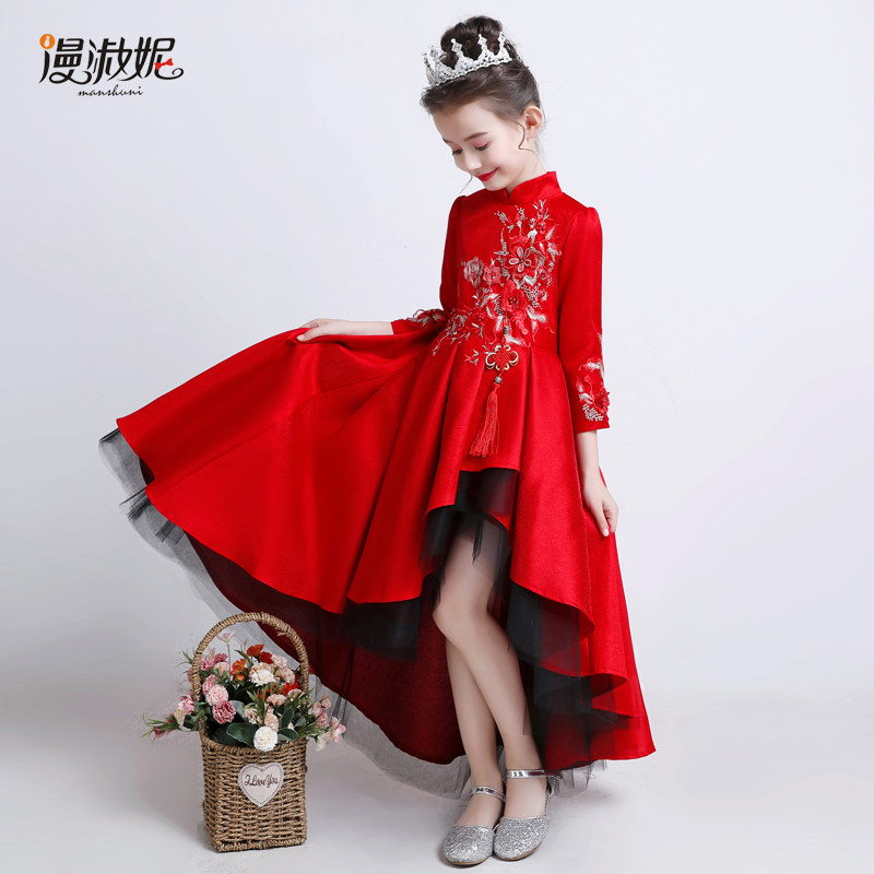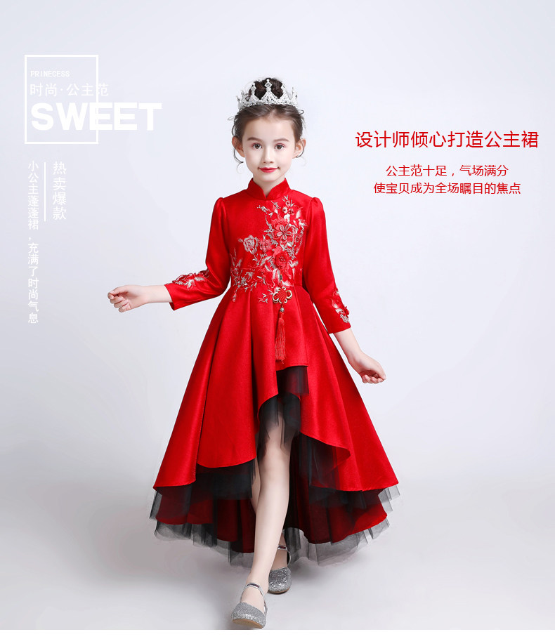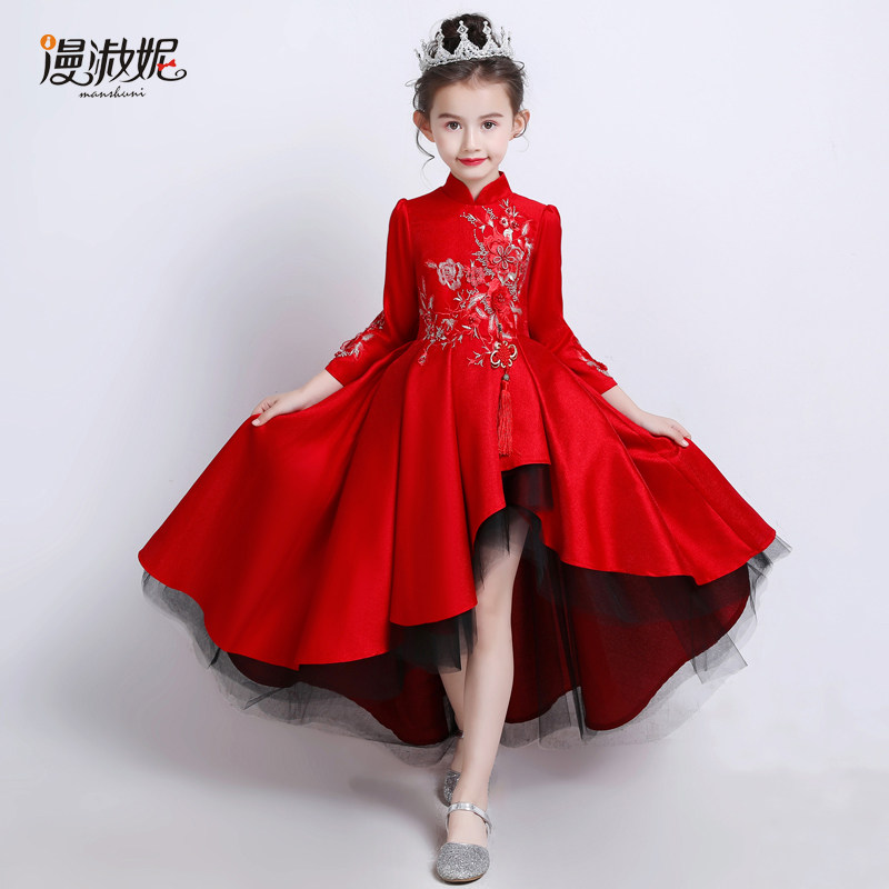 Красное цветное платье, детский костюм, пианино, китайский стиль, для подиума, благородный крой