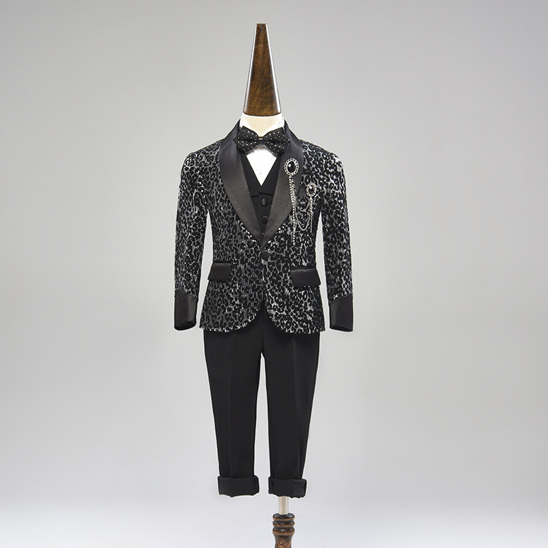 Детский черный костюм мальчика цветочника, комплект, пиджак классического кроя, вечернее платье