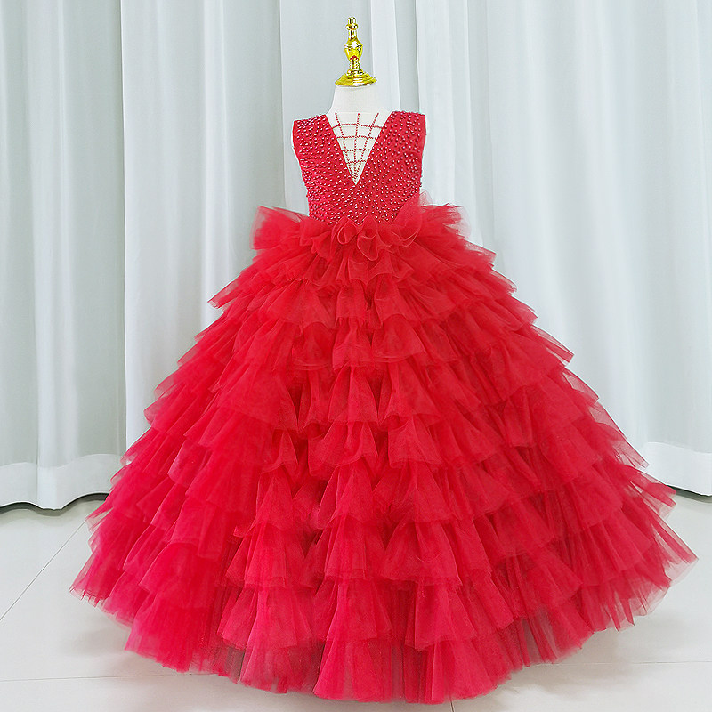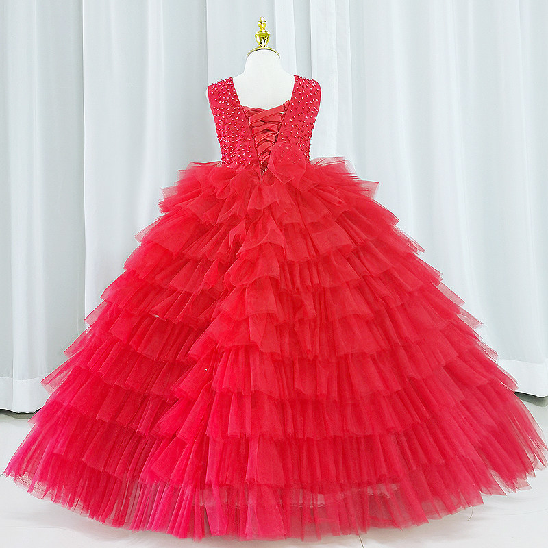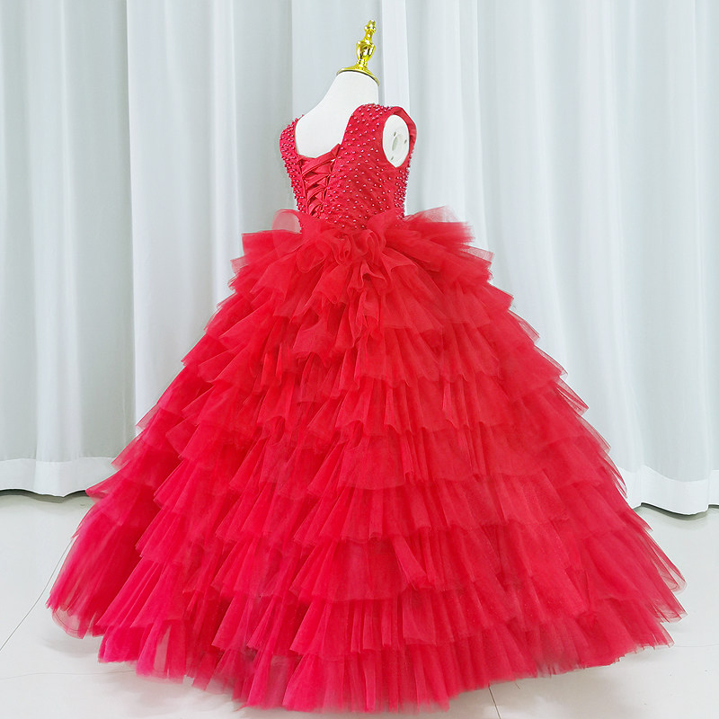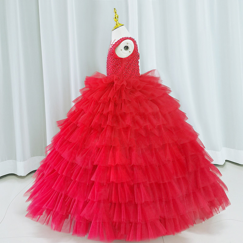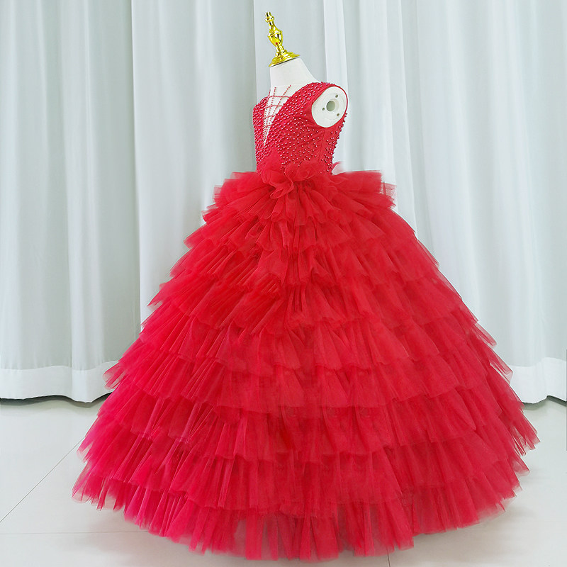 Детское красное цветное элитное вечернее платье, трехмерная юбка