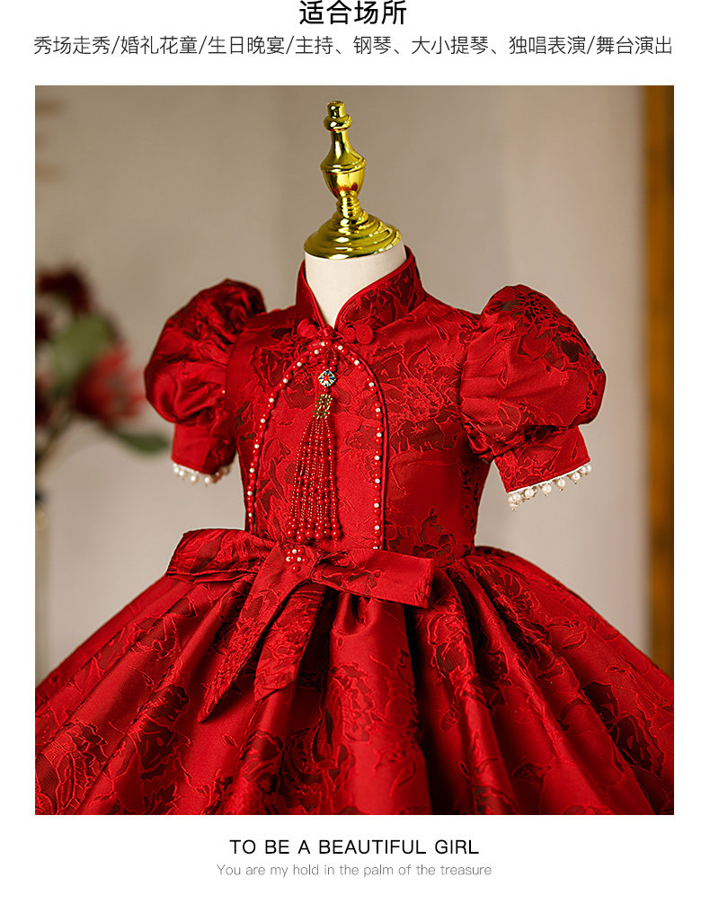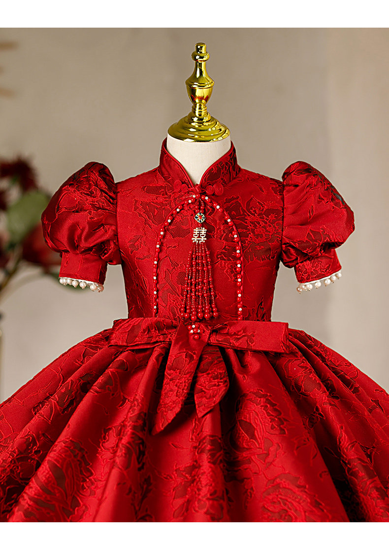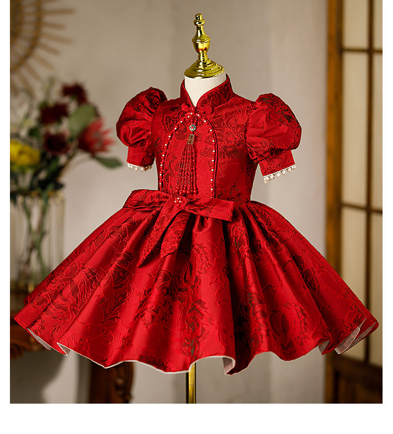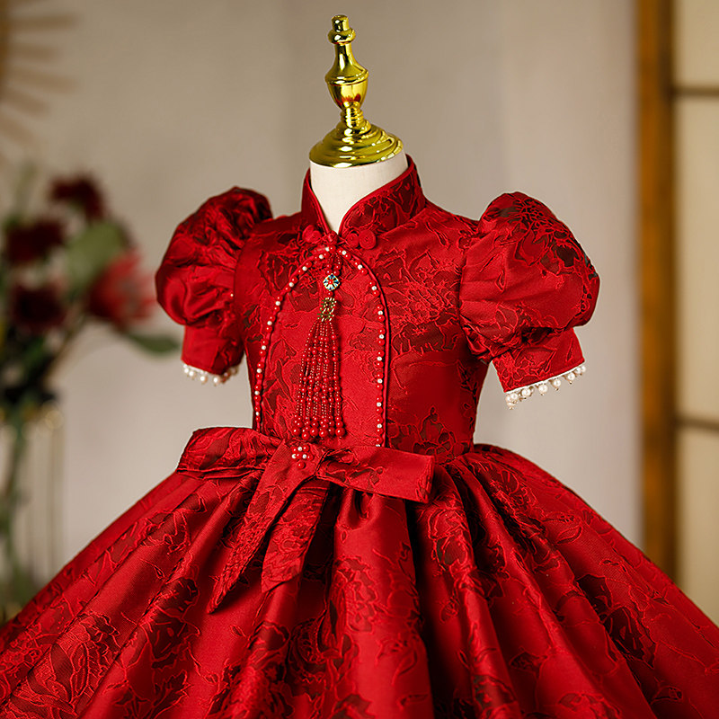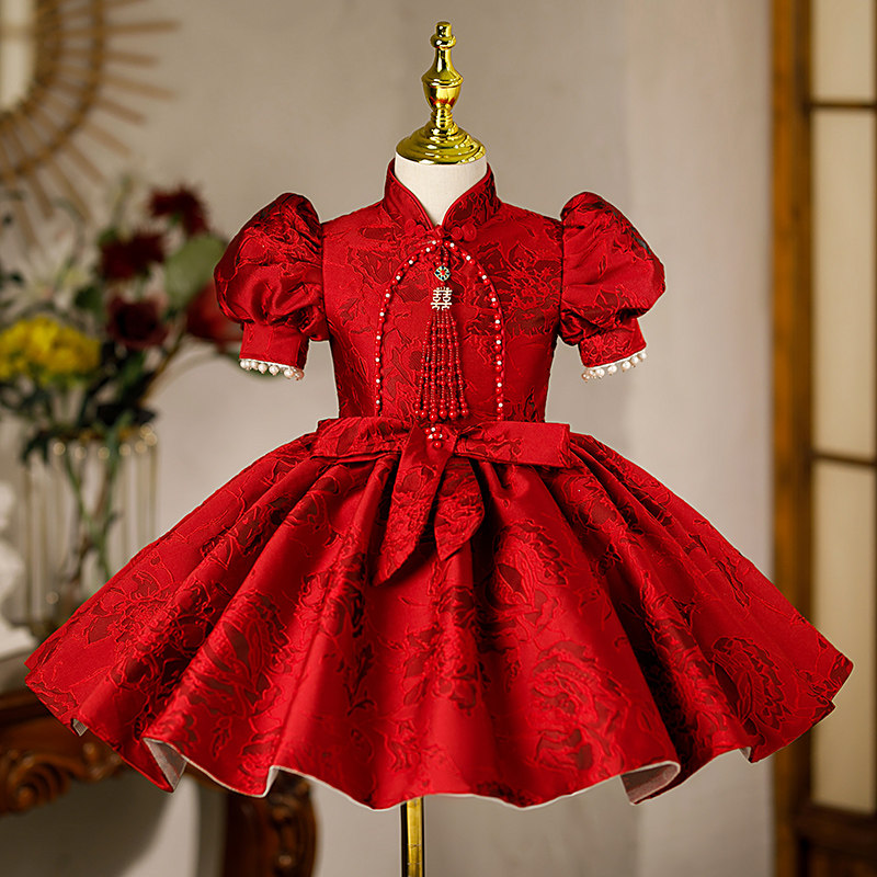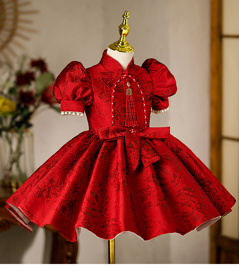 Бордовый наряд маленькой принцессы для девочек, юбка на девочку, костюм, китайский стиль, юбка-пачка