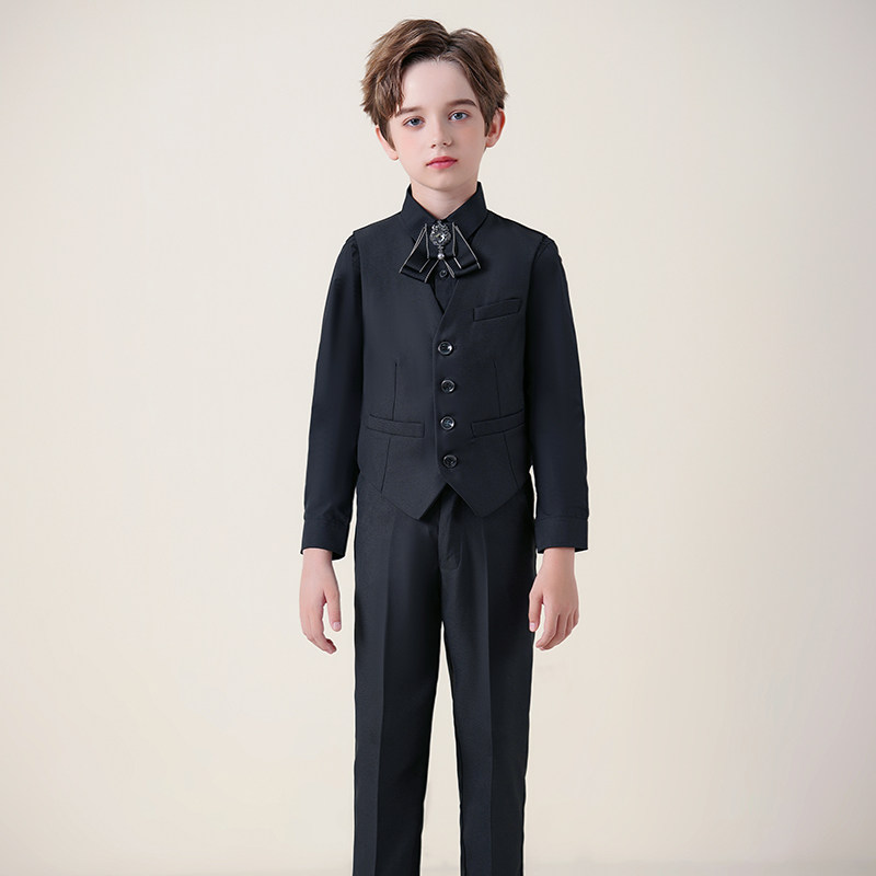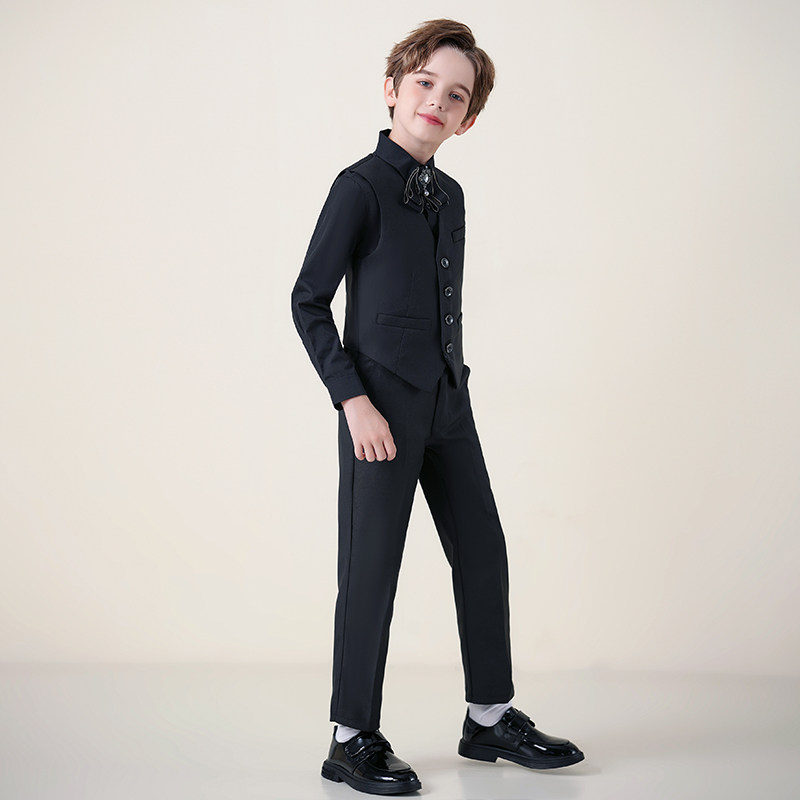 Черный костюм мальчика цветочника, жилет, комплект для мальчиков, детское пианино для детского сада, 3 предмета
