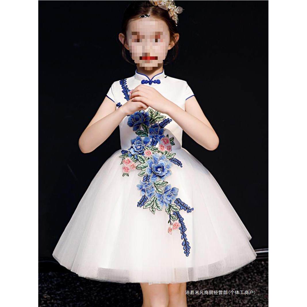 Детское платье, сине-белый элитный наряд маленькой принцессы, в западном стиле, китайский стиль