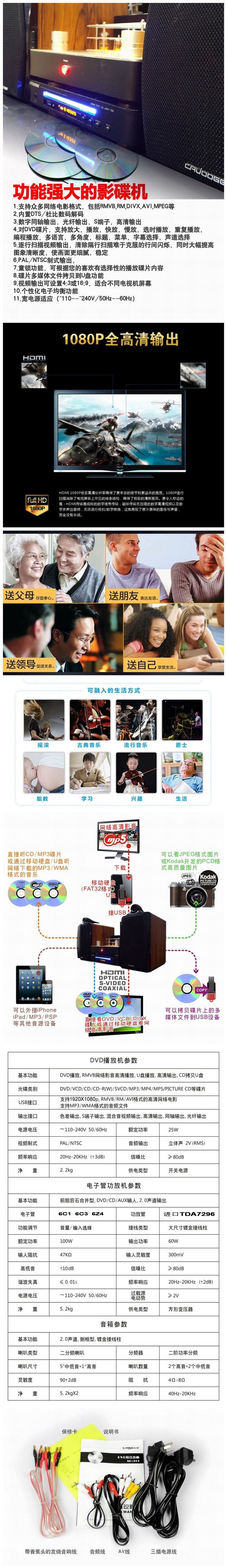 Бесплатная доставка Cavooge Ble Machine Hifi Set CD Family Group Audio DVD USB -лихорадка с высоким уровнем неразрушающего усилителя мощности