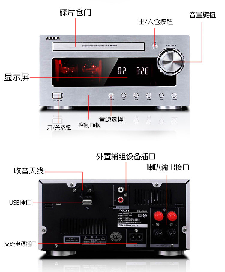 NEON MTB780 680 Лихорадка Электронная трубка и желчная машина Комбинированная динамика Bluetooth Home спальня настольный динамик