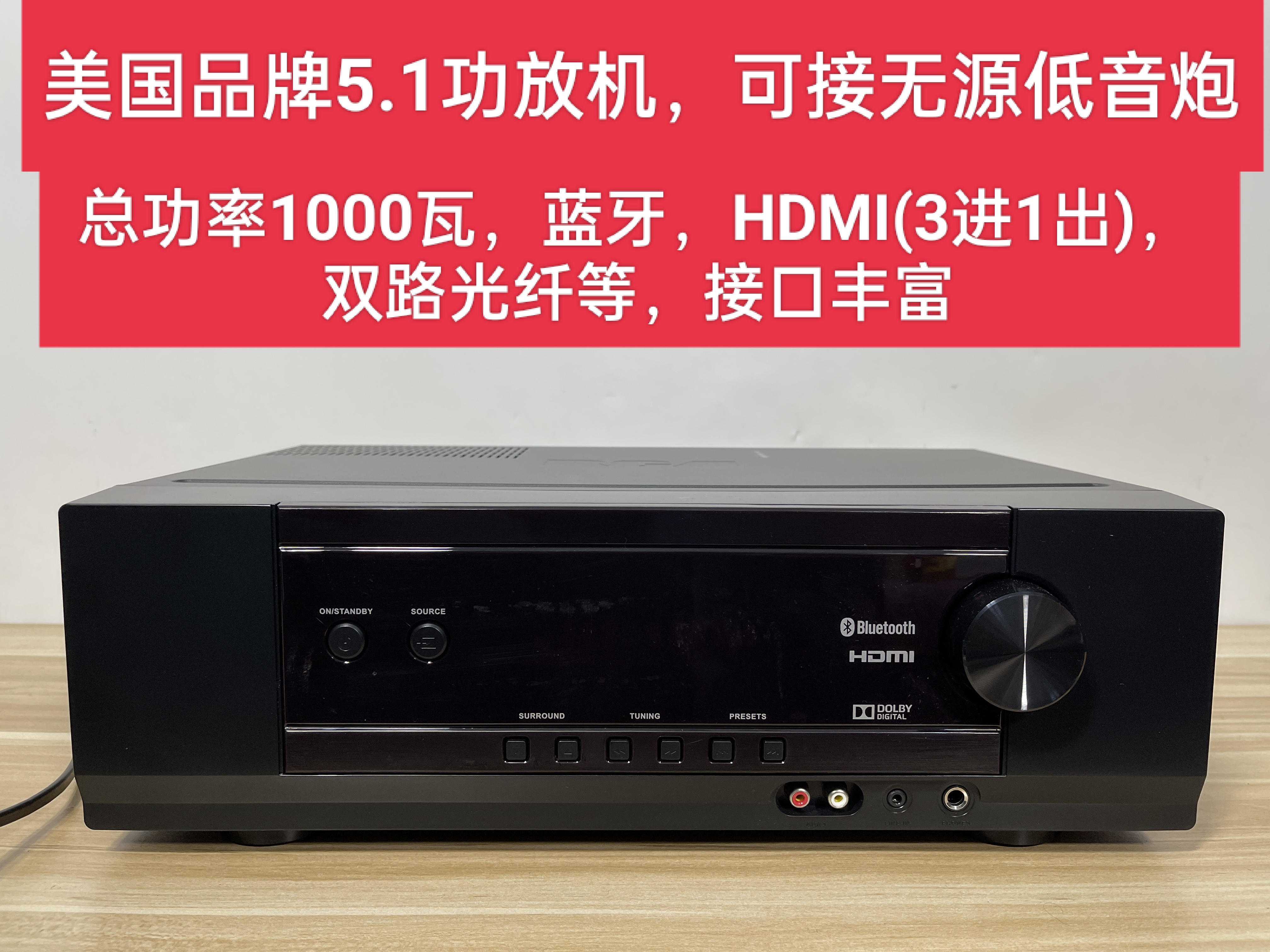 Богатый интерфейс: 3 -пути HDMI High -Definition вход, 1 HDMI High -Definition Выход, Dolby, вход Bluetooth, двухэтажный фенократный звуковой вход, 1 вид коаксиального аудио вход, 2 Aux Audio, 1 -й аудио вход Road 3.5, FM /AM Radio Machine, USB читает песни, доступ к микрофону.