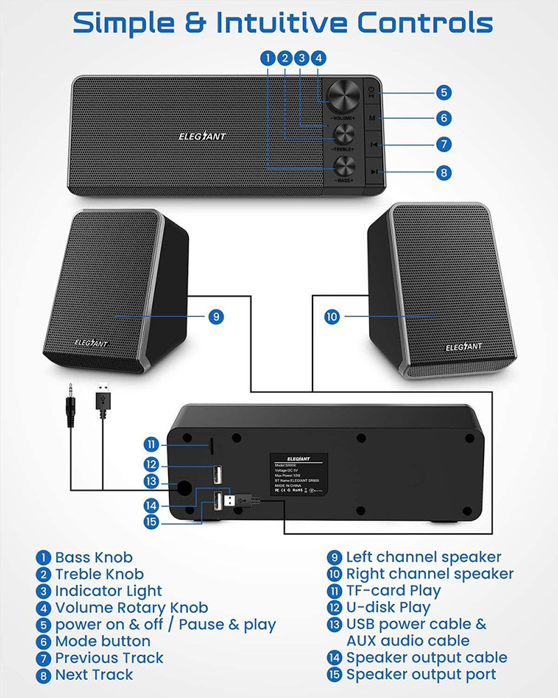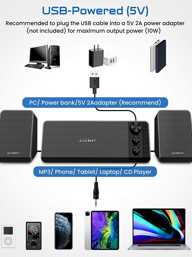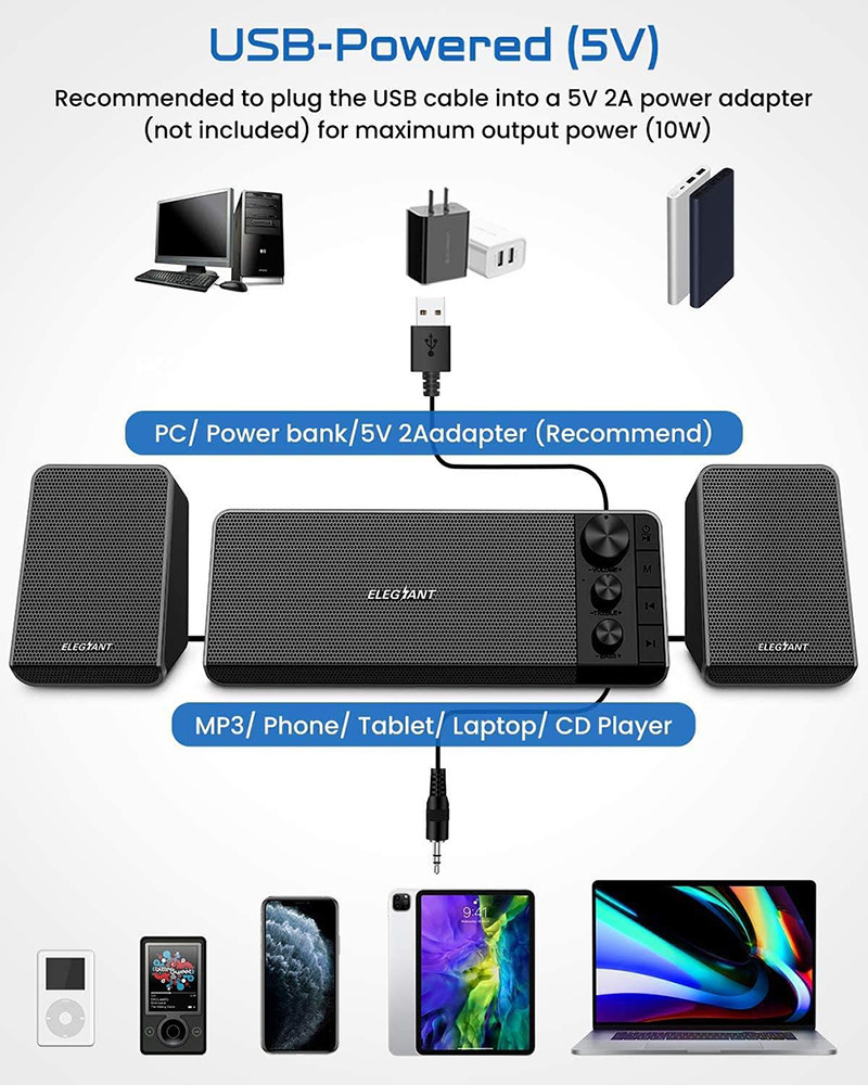 Повышенная энергия в Соединенных Штатах: SR800 полностью предоставлен USB, и она подключена к вашему устройству универсальным автоматическим подключаемым кабелем 3,5 мм.Рекомендуется использовать отдельный адаптер (исключая) для питания динамика, чтобы обеспечить мощность и качество звука динамика.
