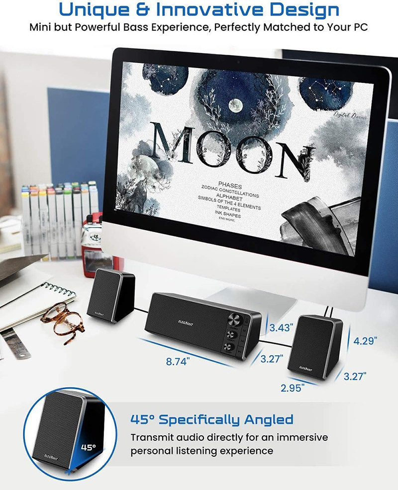 Специальный угол при 45 градусах: динамики USB используют высококачественные ткани и наклоны на 45 градусов, чтобы обеспечить лучшее звуковое поле.Стереодинамики могут быть размещены непосредственно под дисплеем, чтобы играть в чистую и мощную музыку.