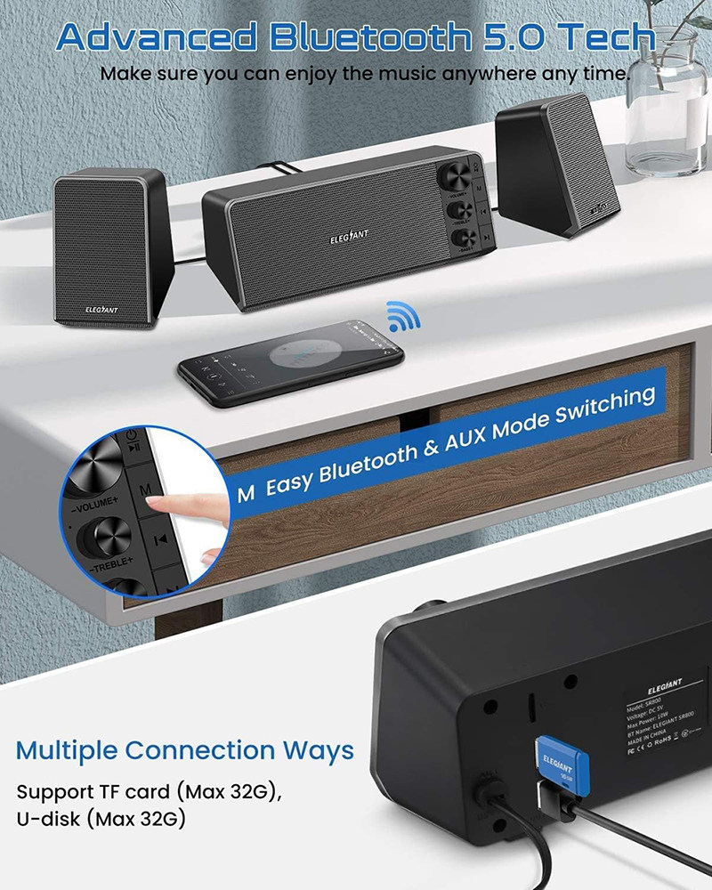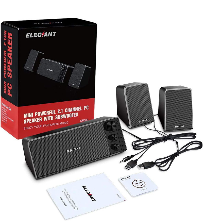 Звук начинки для комнаты с 10 Вт: он оснащен сабвуфером и далеким водителем, а элегантная система динамиков канала SR800.1 создает сильный звук и заполнение комнаты.Хорошая работа с вашим компьютером, не жертвуя ценным офисным помещением.
