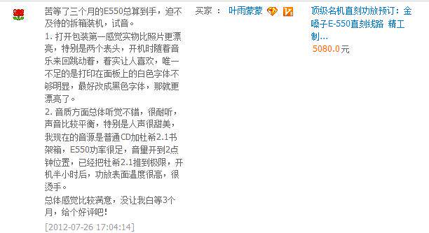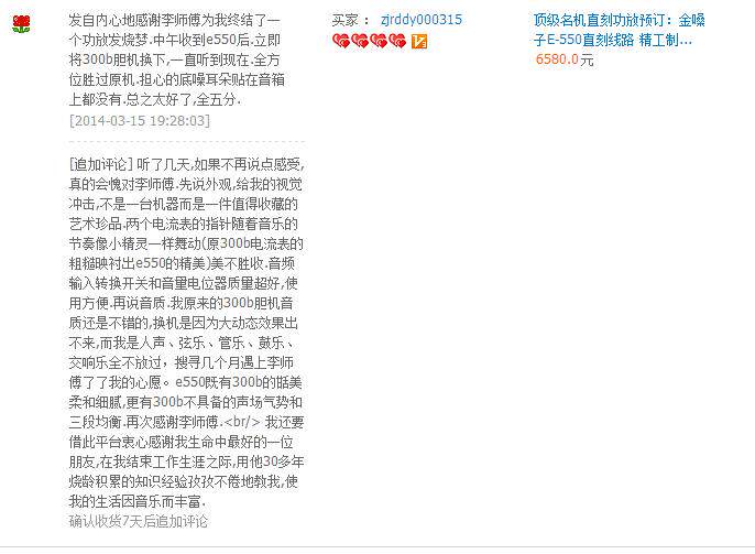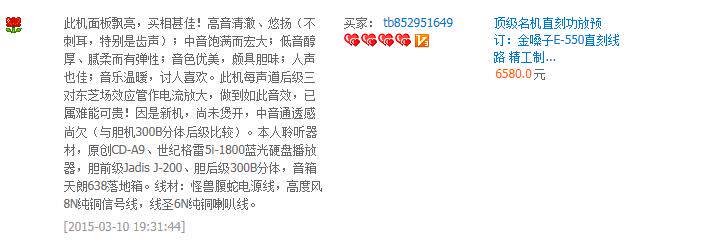 Оценка качества звука, не хочу, чтобы я сказал, позвольте мне сказать, опасаясь рекламы ингредиентов, пусть настоящие покупатели говорят, что в возрасте 20 лет есть первые ожоги и старше в возрасте 60 лет. которые любят использовать машины желчного пузыря и некоторые технические школы, которые любят сварочные машины для комплексного тестирования, а также в Гонконге и иностранные энтузиасты. Конечно, цена этого усилителя росла.