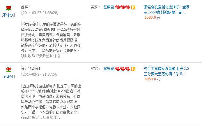 Когда дело доходит до оценки, я заявляю, что все оценки в моем Taobao являются реальными чувствами реальных покупателей. Их часто говорят о нескольких словах на Вангванге. I. Я не могу оценить других, но все динамики и усилители в моем магазине Taobao сделаны.Поэтому во мне нет самых дешевых продуктов, нет более дорогих продуктов, только самые аутентичные, будь то мой продукт, введение и опыт использования всех продуктов в моем магазине и моего собственного обслуживания, самый важный и мой Искренность -самая подлинная. Найдите здесь самый удовлетворительный продукт!