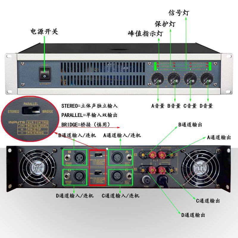 Профессиональный Audio Audio Dual Channel Power Stage Stage ktv задний усилитель мощности высокая мощность 4 четыре канала