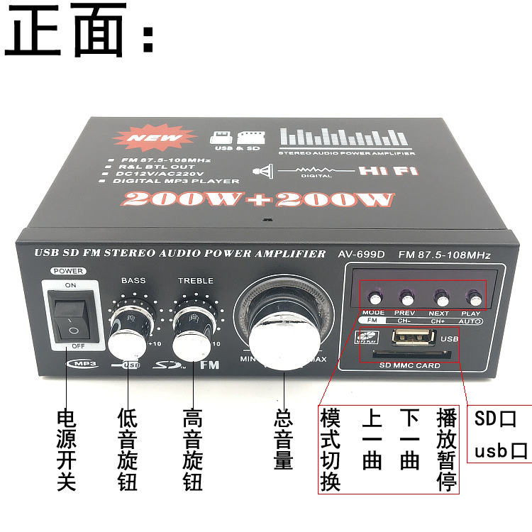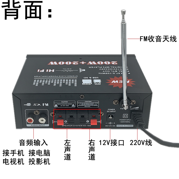 Маленький усилитель, колонки, USB-флеш-накопитель, 220v, 12v, bluetooth, дистанционное управление