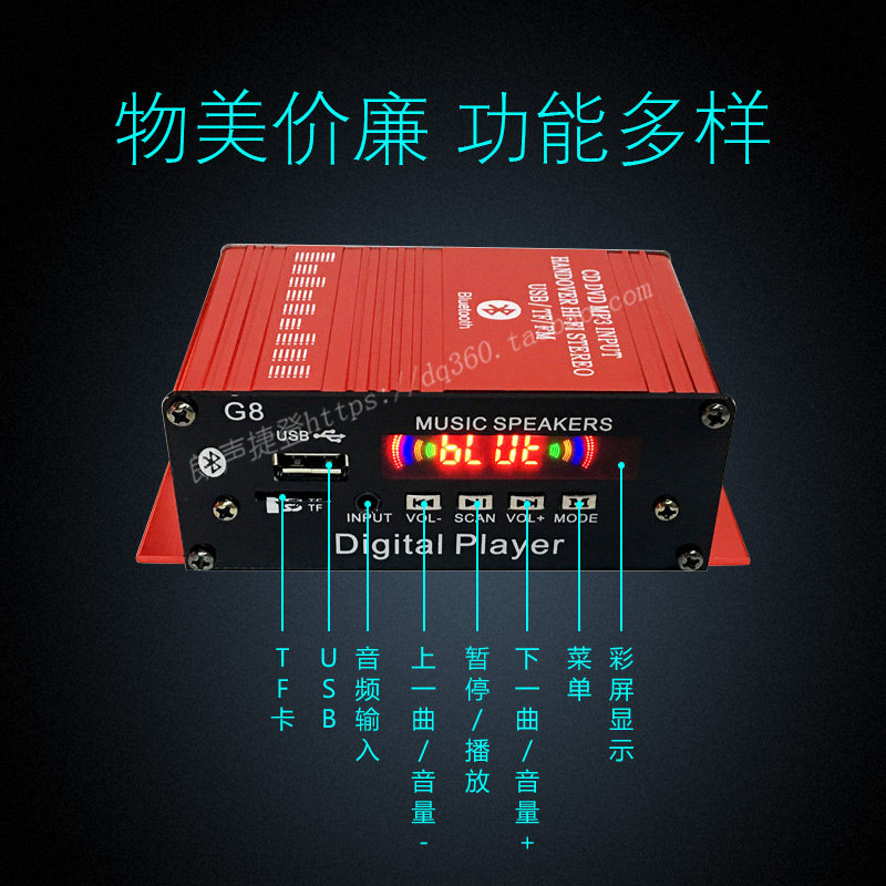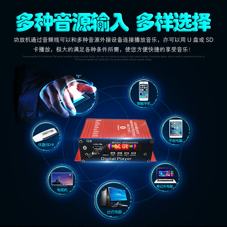 Универсальный цифровой усилитель, bluetooth, 12v, дистанционное управление, G8