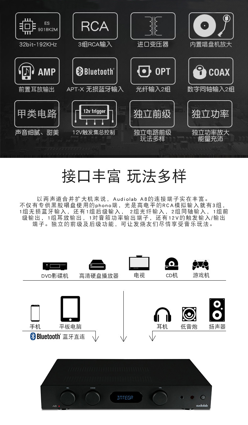 傲立 /Audiolab A8 Wireless Bluetooth усилитель мощности 2.0 лихорадка Hifi усилитель мощности DAC Decoding усилитель мощности усилитель