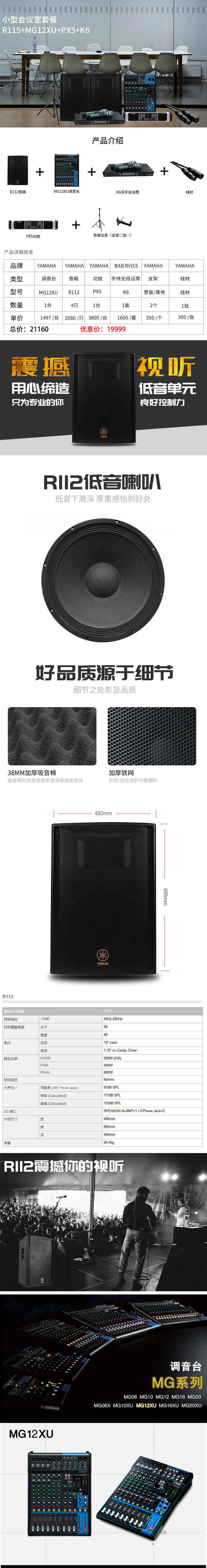 Yamaha/雅马哈 R112+PX5+MG12XU+Беспроводной портативные микрофона Микрофон Пакет производительности