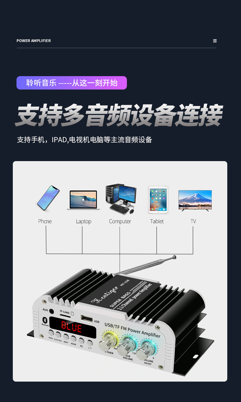5.0 Bluetooth Home пользователи 3D Sound усилитель размер стальной пушки 2.1 канал Ultra -Theight Bass Hy118
