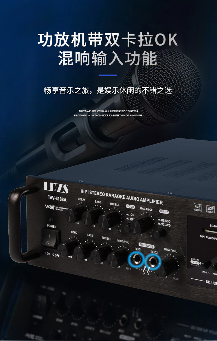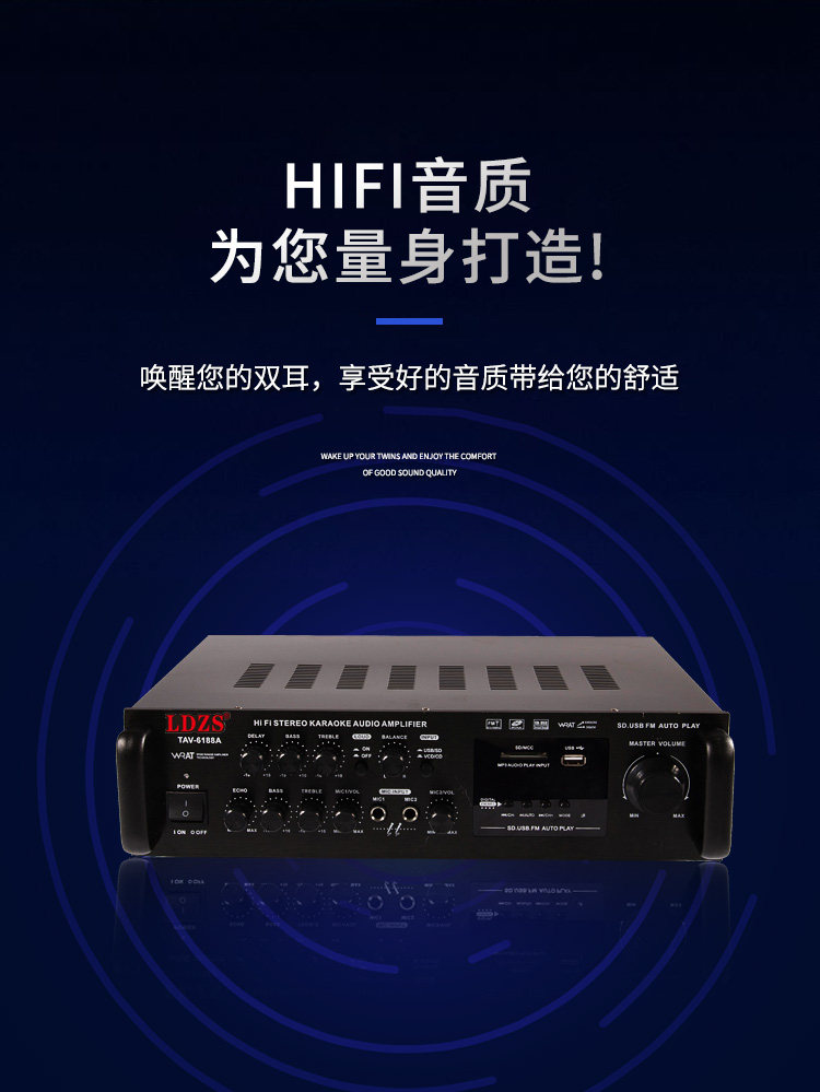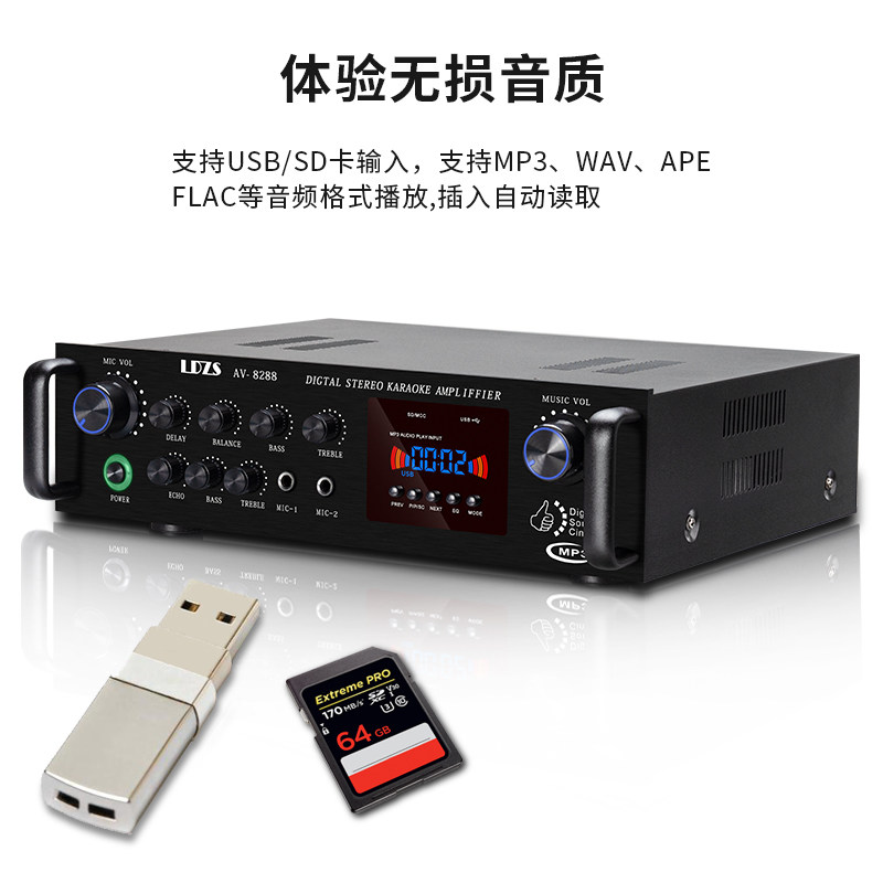 220V Home KTV усилитель Outdoor Optical Fibre High -Shul Bluetooth -плагин -ин MP3 Караоке двойной усилитель мощности