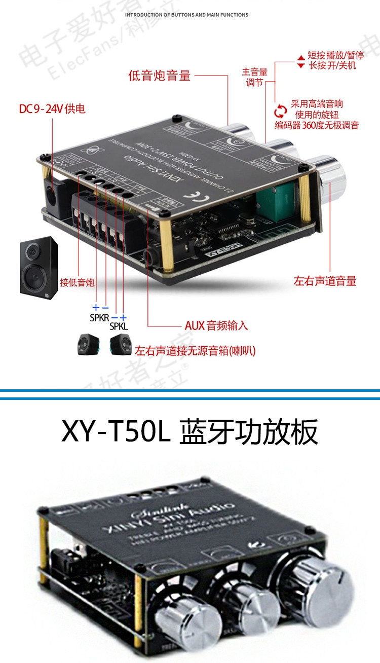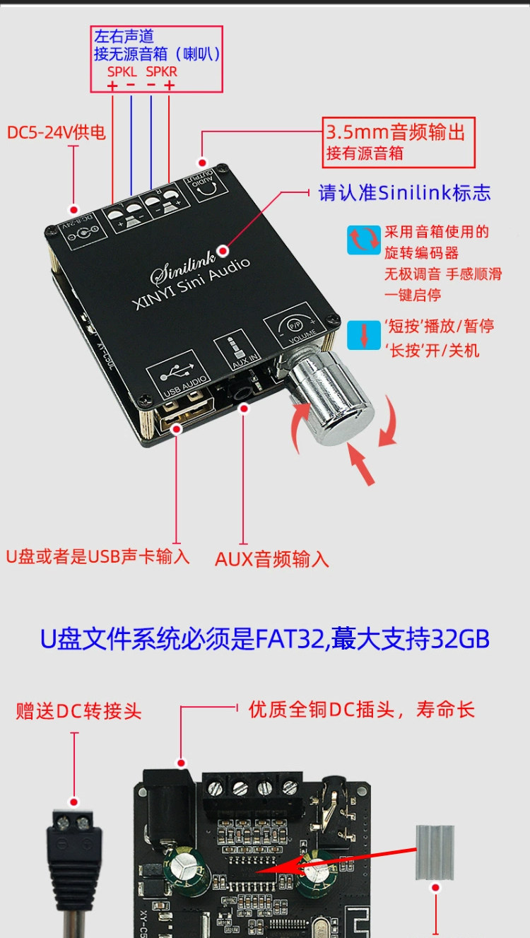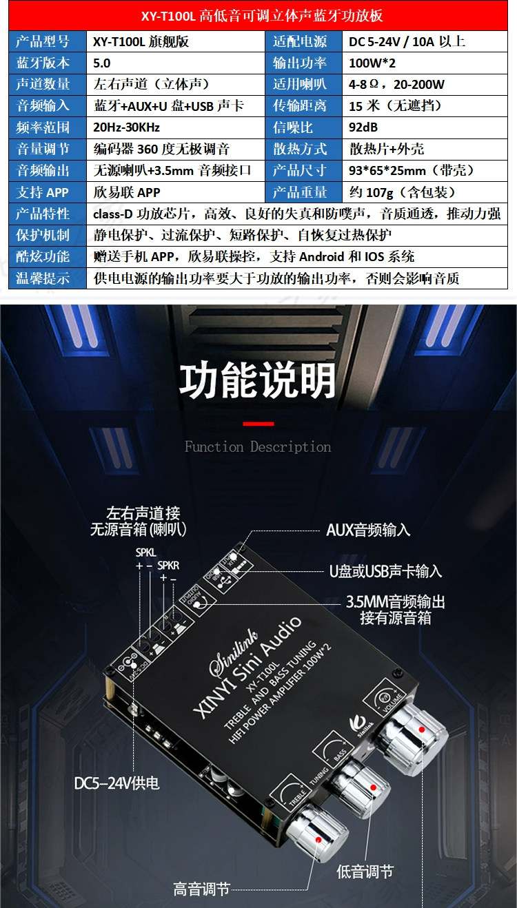 5.0 Bluetooth Power Plate Module Audio Music Player Player Speaker Sound Bass Cannon наушники Aux interface