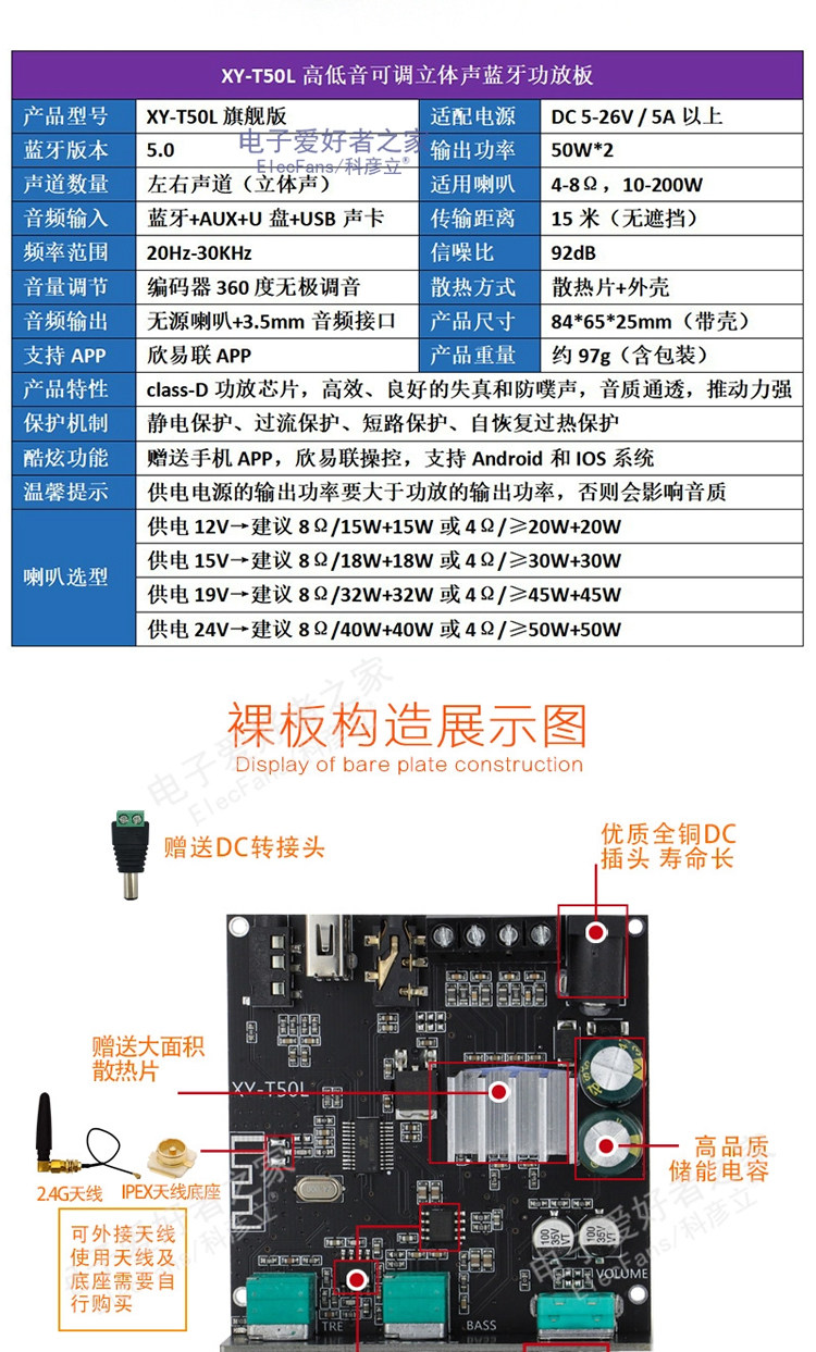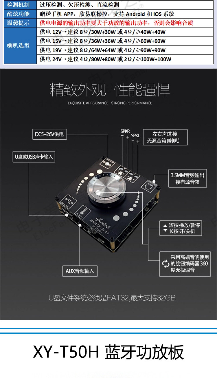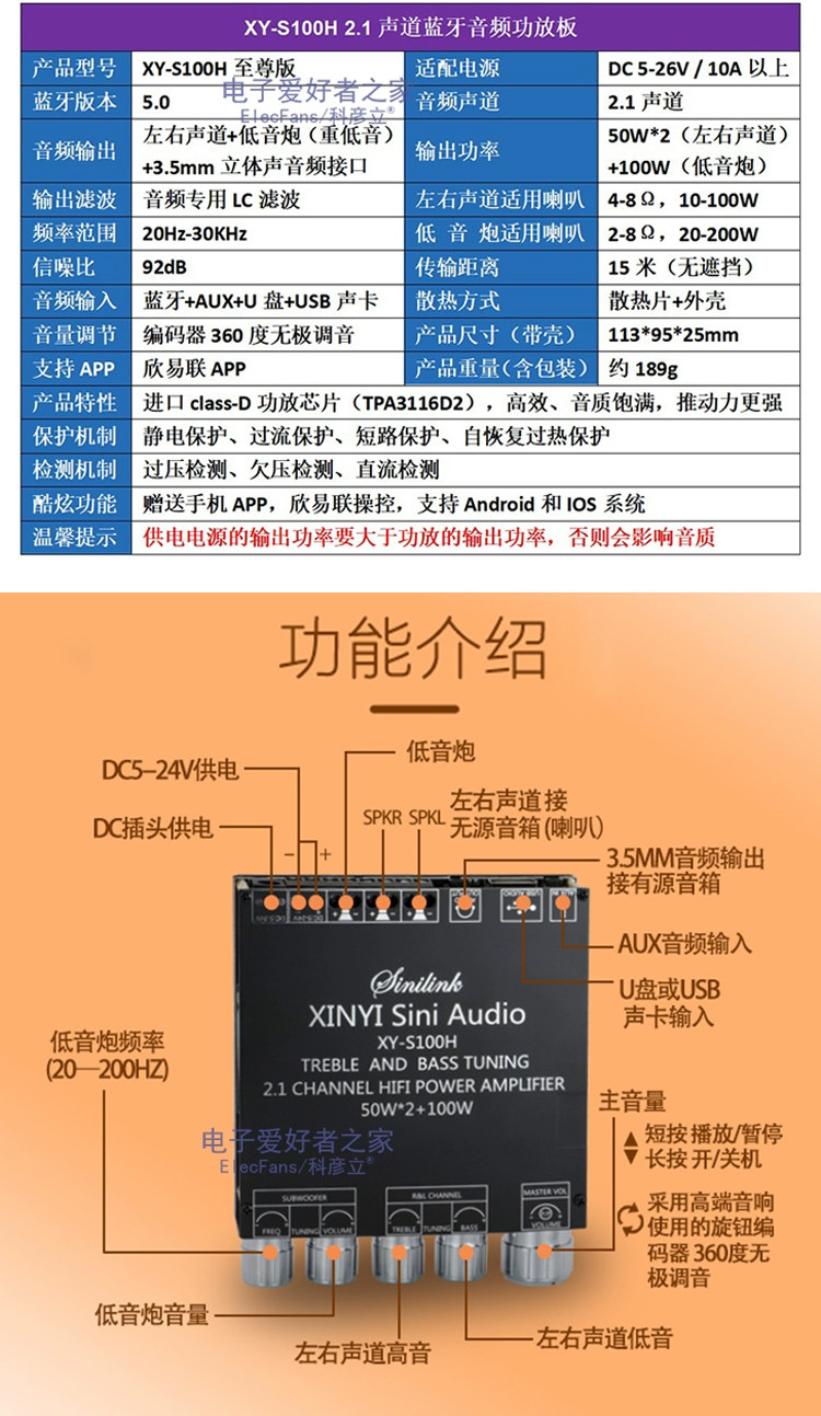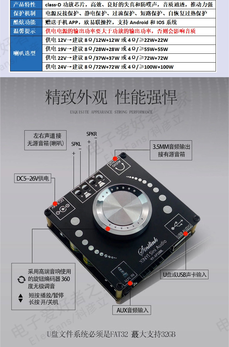 5.0 Bluetooth Power Plate Module Audio Music Player Player Speaker Sound Bass Cannon наушники Aux interface
