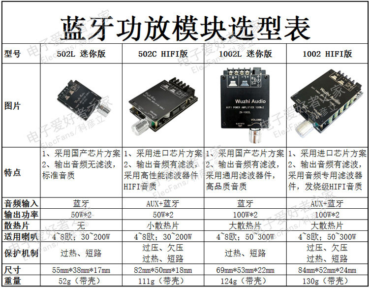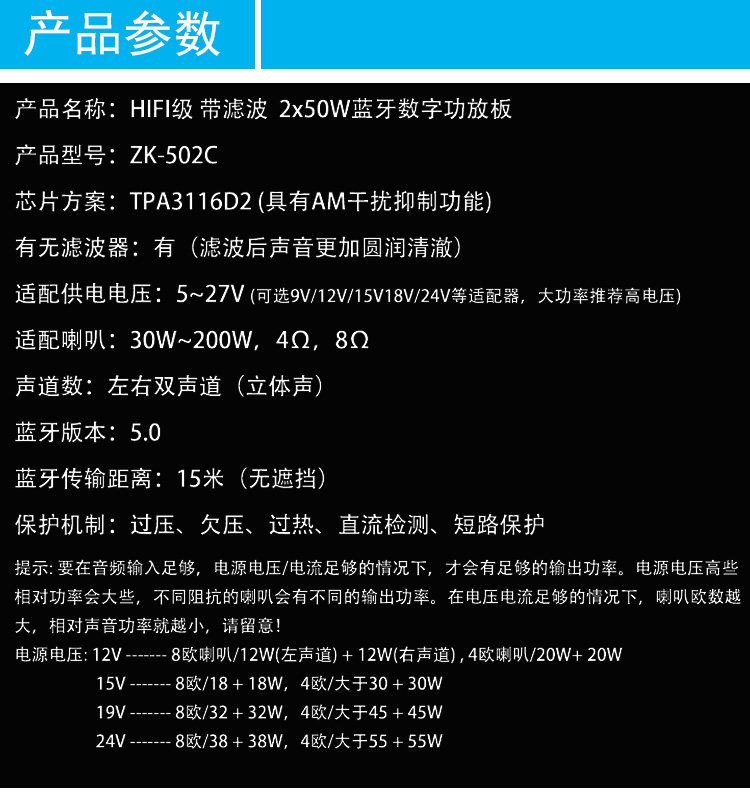 Digital Hifi Class Power Panel TPA3116 Audio Module 2.0 Bluetooth ZK-502C 50WX2