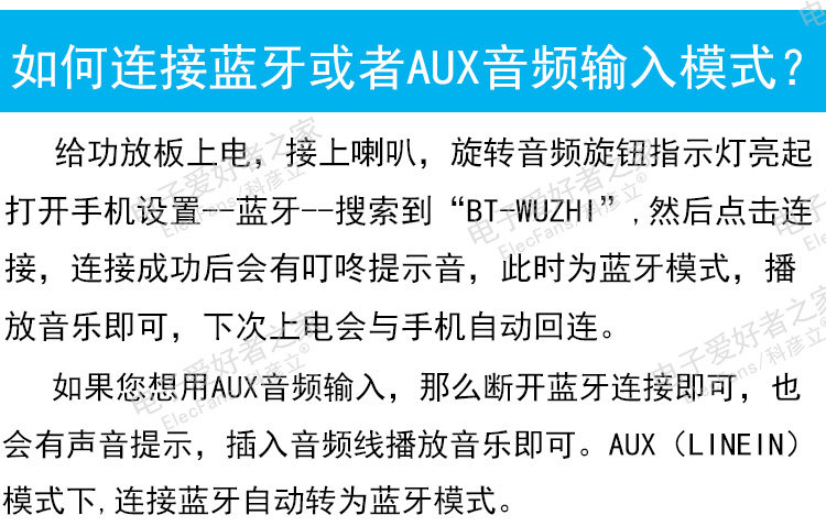 Существует два метода ввода источника звука: Aux и Bluetooth, два -In -One;