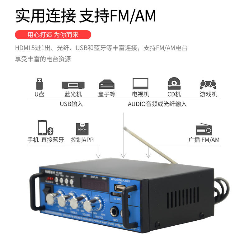 Усилитель, многофункциональный USB-флеш-накопитель, bluetooth, 12v, 220v