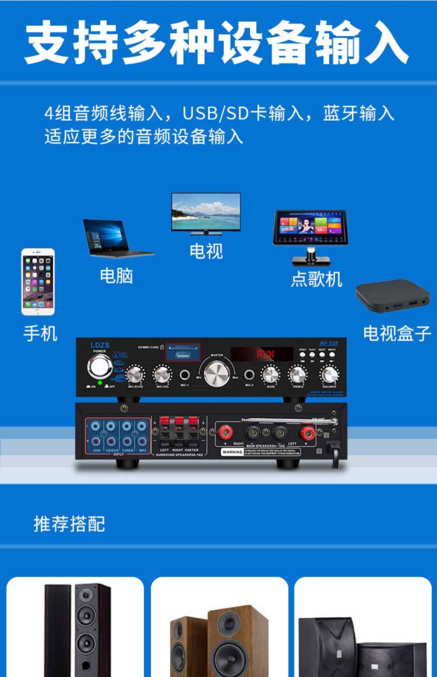Усилитель, 220v, 300W, высокая мощность, bluetooth