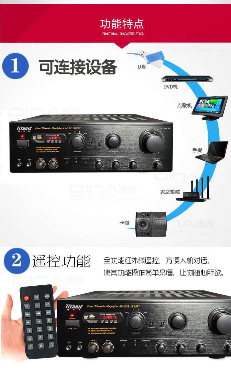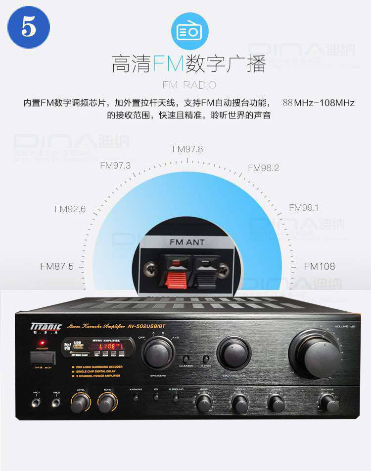 5 -канальный профессиональный KTV High -Power Card Package Усилитель Home Audio Bluetooth Card Ok Радио усилитель
