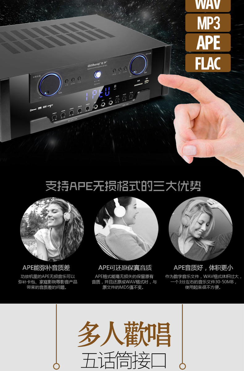 Qisheng New High -мощный домохозяйный усилитель мощности сеть голоса Интеллектуальная профессиональная профессиональная ktv bluetooth stage караоке тяжелый бас Hifi High -End 1200W Audio Public Fever Wi -Power усилитель Power усилитель