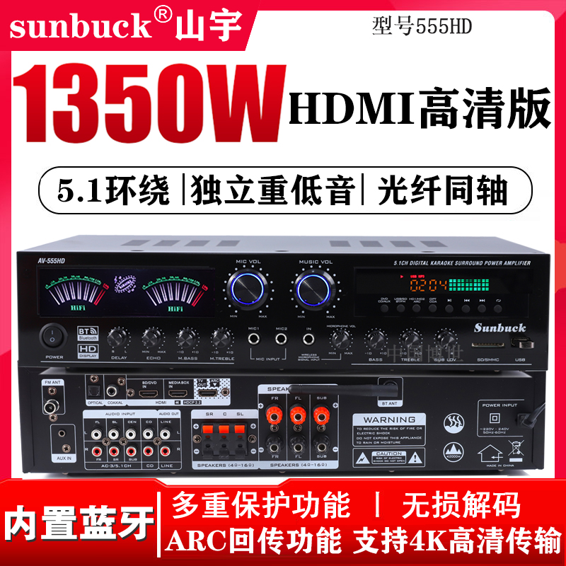 5 -канальный усилитель мощности домохозяйства с высоким уровнем караоке -лихорадки тяжелый бас HDMI Digital Coaxial Coaxial 7.1 Bluetooth
