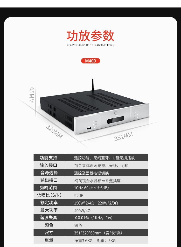 Все мысли/M400HIFI Fever High -fidelity Digital Player Home High -Sower USB Bluetooth 5.0 Усилитель