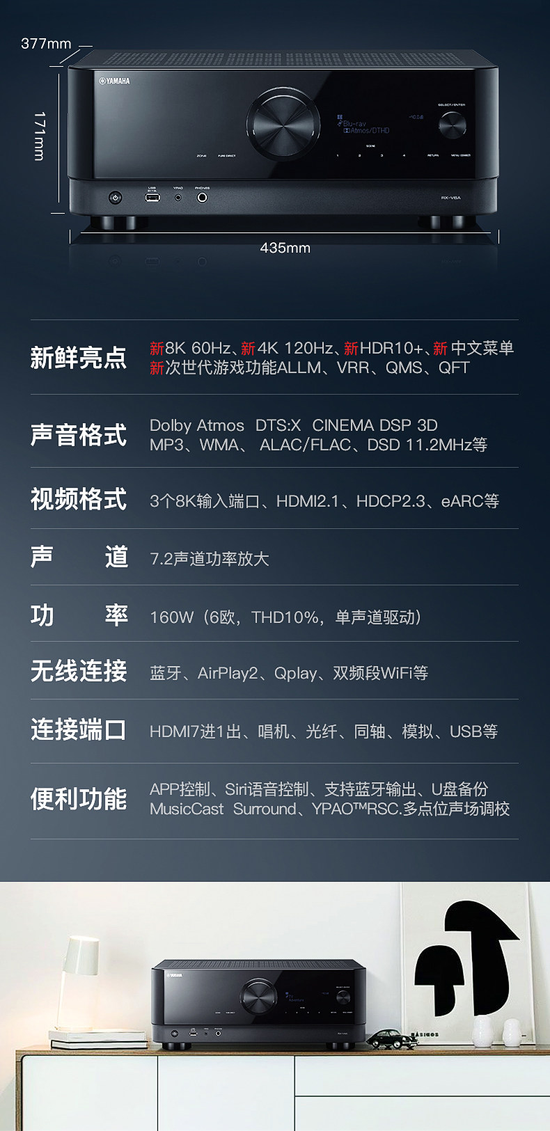 Yamaha/雅马哈 RX-V6A Home 7.2 Канал AV усилитель 8K Панорамный звуковой усилитель