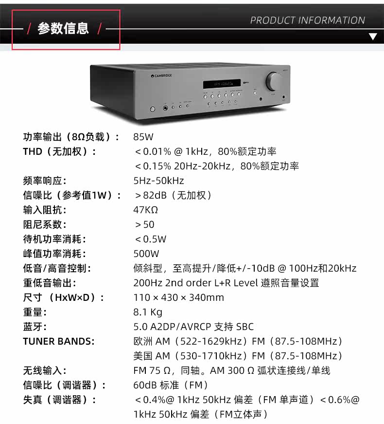 Кембридж/Британский Кембридж AXR85 Digital Power Portrait Bluetooth Hifi High -Fidline True Fursace