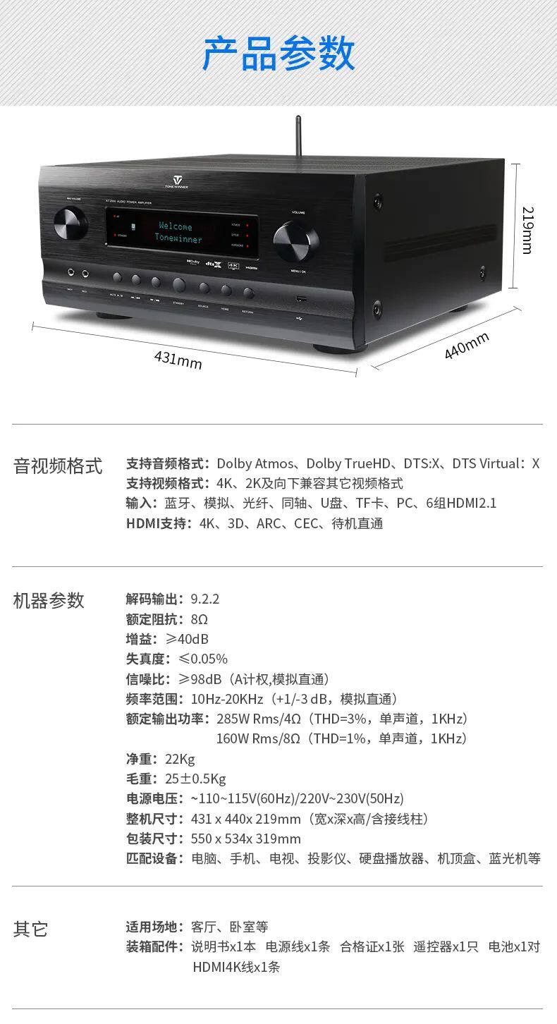 Winner/天逸 AT-2300 AT-2000 AT-2700 Panoramic Sound 11.2 Высокоэлементный усилитель Shadow K