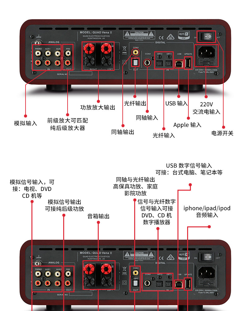 Британская национальная столица/Quad Vena II Усилитель DAC Weisana Bluetooth All -In -One Otpsus USB Pre -Level