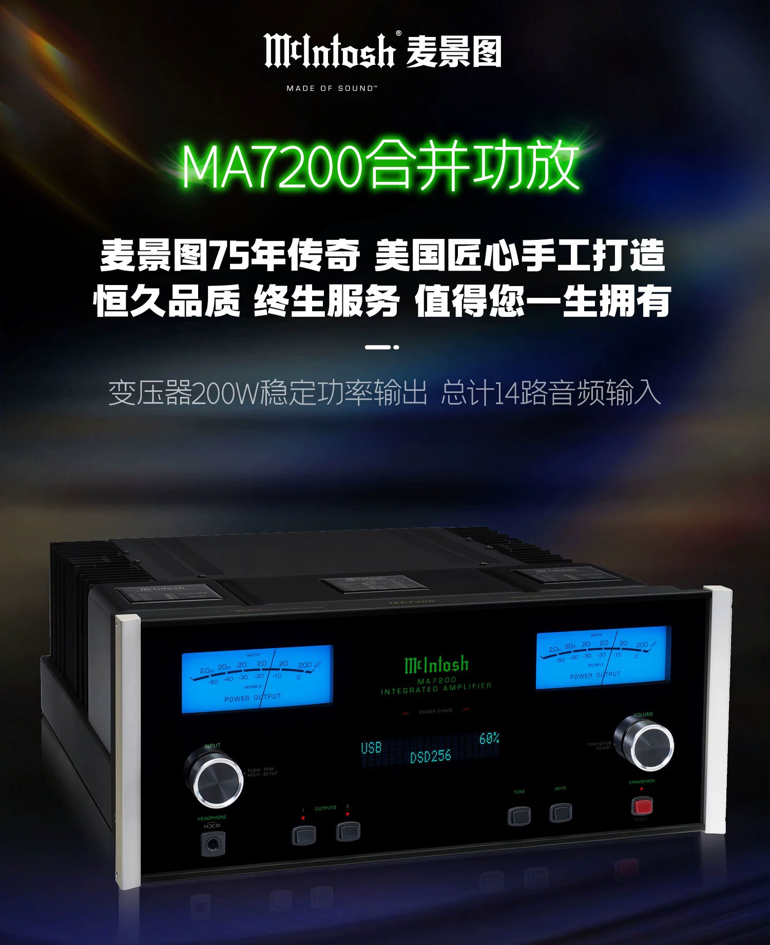 Последний McIntosh/Mai Jingtu MA7200 объединенный усилитель American Fever Power усилитель