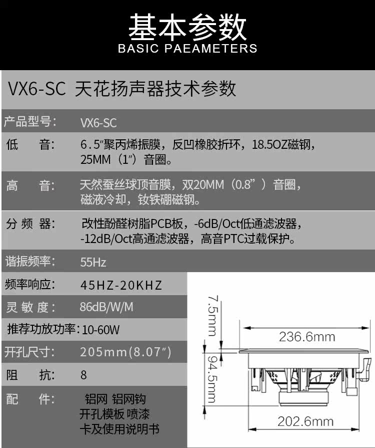 Hywei VX6-SC Двухтоновый фиксированный блок-потолок/потолочный фоновая музыка/Потолочный динамик