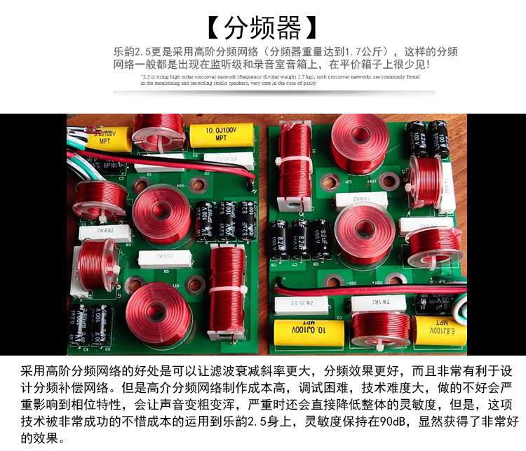 Это два -и -халф -Unit Three -Unit Than -динамик. Твиттер 25 -я сердечный шелковой пленку и конструкцию поверхностного конуса Hipvitum, которая более способствует высокочастотному расширению.Коническая пленка сабвуфера изготовлена из специального полипропиленового материала, не связанного с несайеновым, заполненным сантоприем и двойным электромагнитным экранированием.Звуковой бассейн, изготовленный из этого материала, имеет низкую искажением, сильную вязкость, высокую консистенцию и хорошую низкочастотную эластичность.Фактически, этот специальный материал действительно может быть на 20 % легче, чем материал для вождения мембраны, используемый обычными ораторами. Следовательно, он может быстрее реагировать на бас -цуи, а также может привести к значительному улучшению высокочастотной реакции, необходимой для того, чтобы быть суровым. , F0 = 35 Гц на основе низких единиц, сделайте низкочастотную погружение глубже.Высокоэффективная чистая медная проводная колонка, которую можно использовать в двойном расщеплении, может дать игрокам больше места для игроков, которые играют с двумя линическими расщепленными звуками.Коробка изготовлена из SMDF толщиной 20 мм и сильной. Передняя барьерная пластина использует толщину 25 мм. Внешняя внешность с высокой импортной бревенчатой кожей. Независимая опора трех слоев и четырех полостей внутри коробки усиливается, чтобы уменьшить резонанс коробка как можно больше.На задней барьерной плате есть басовый блок. Стоит отметить, что в нижней части коробки представлена отдельная камера для орошения тяжелых песчаных зерен, чтобы улучшить самообладание коробки. Установка установлена на основе Внизу существует высота высотой 8 мм, что может сделать динамик стабильным на полу, чтобы обеспечить звуковое поле под динамической динамикой может быть стабильным в качестве камня.Leyun 2.5 использует сеть расщепления частоты с высокой частотой (вес частотного деления достигает 1,7 кг). Такие сети частотного деления обычно появляются на уровне прослушивания и динамика студии звукозаписи, и это редко в доступной коробке.Преимущество использования сетевой сети с высоким уровнем частоты состоит в том, что наклон ослабления фильтра выше, эффект частотного деления лучше, и он очень способствует проектированию компенсационных сетей оценки частоты.Тем не менее, стоимость создания высокочастотной сетевой сетевой сети высокой, трудно отлаживать и трудно в техническом. Тяжелые случаи, это будет напрямую снижать общую чувствительность. Редко доступная коробка не осмеливается пробовать ее легко.Тем не менее, эта технология используется при очень успешном использовании стоимости LEUN 2.5, и чувствительность остается на уровне 90 дБ, что, очевидно, достигло очень хороших результатов.